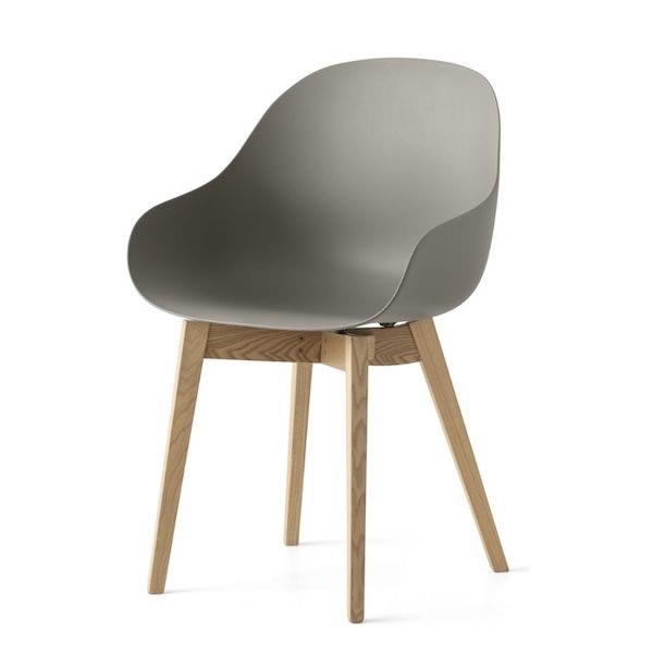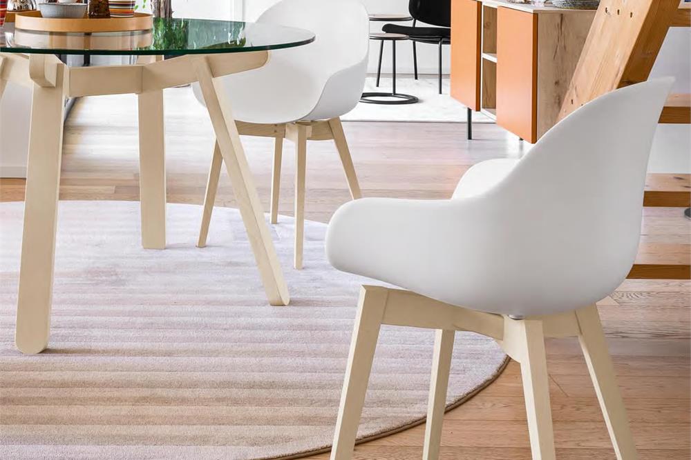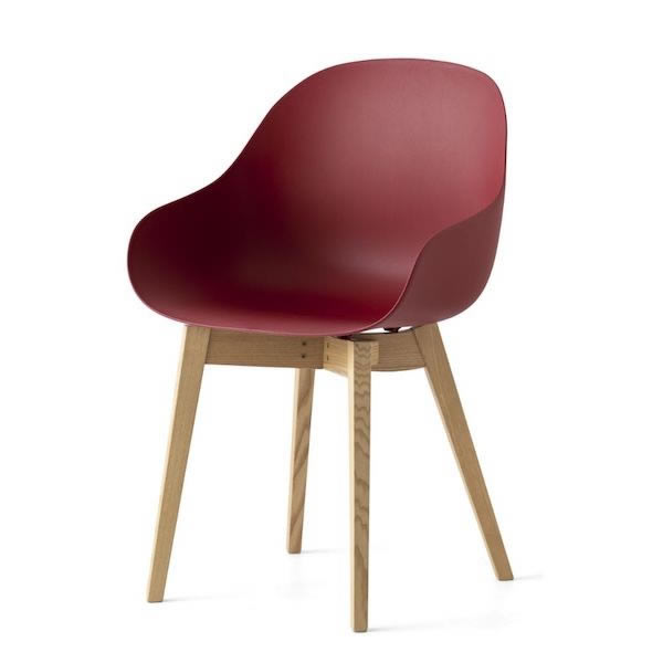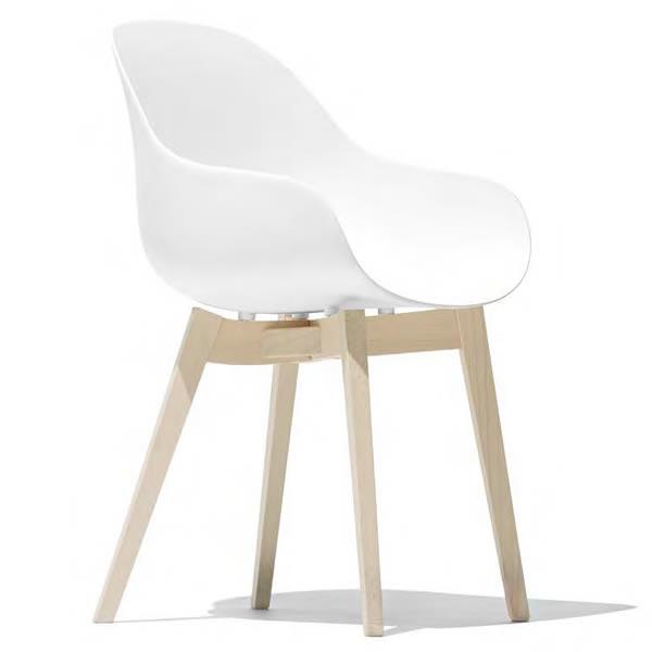 Academy è la poltroncina must-have per chi desidera comfort e stile in un unica seduta. Realizzata in polipropilene riciclato per il massimo della praticità, si combina ad un fusto 4 gambe in legno.