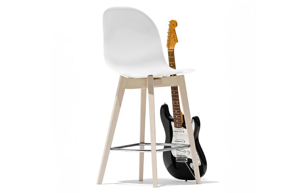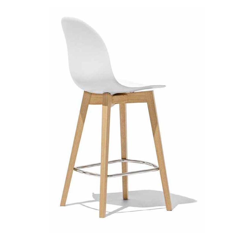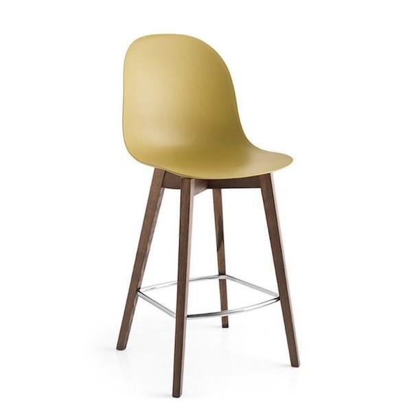 Sgabello modello ACADEMY con struttura in legno. Le varianti di colore della scocca, abbinabili ai diversi toni del legno e il poggiapiedi cromato, consentono di offrire più di un centinaio di alternative per soddisfare qualunque esigenza estetica e funzionale.