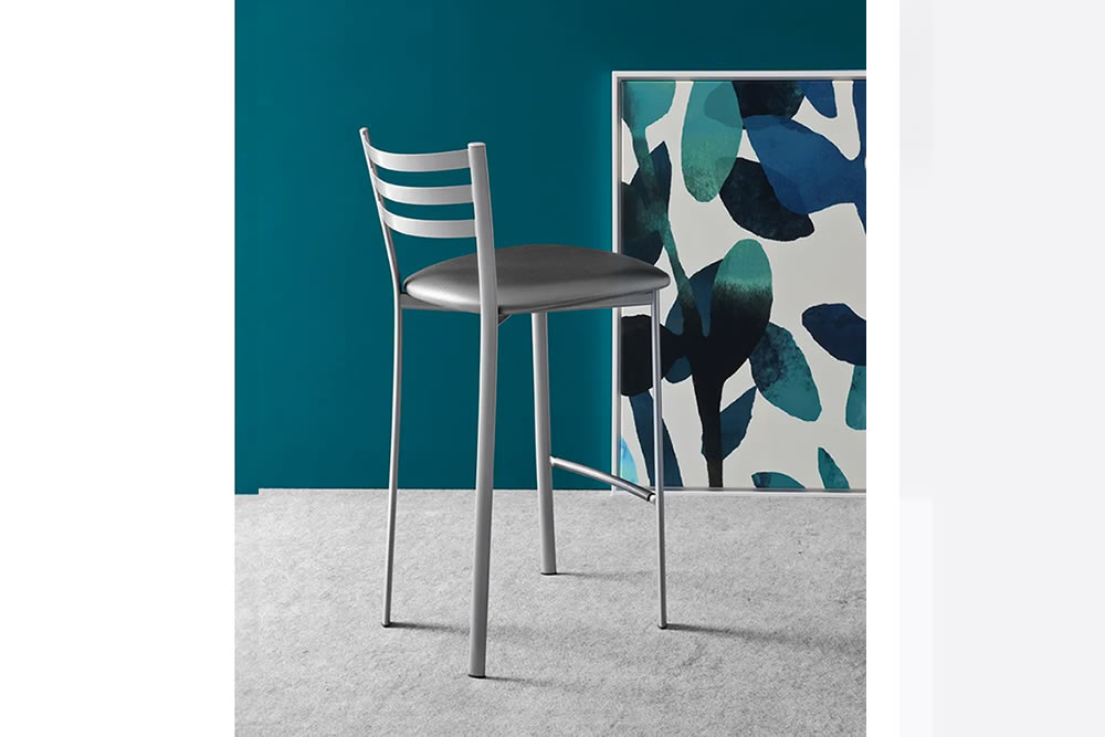 Sgabello modello ACE, struttura in metallo con poggiapiedi e sedile, disponibile in molteplici materiali e finiture. Sgabello leggero e versatile, grazie alla possibilità di creare abbinamenti sempre nuovi tra la struttura, in tubolare metallico, e i diversi materiali e finiture colore disponibili per i sedili. Lo schienale a mezza altezza garantisce un comodo appoggio della schiena.