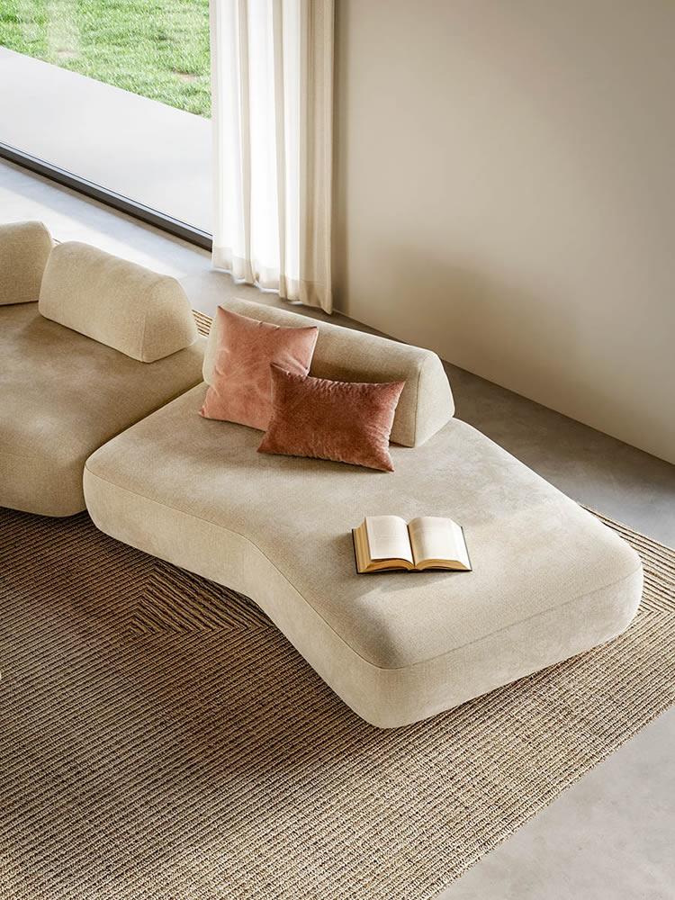 Inoltre, puoi completare la seduta scegliendo tra schienali mobili in cinque versioni: Bacio, Mambo, Capriccio, Abbraccio e Reed; ciascuna caratterizzata da forme e altezze diverse e che puoi decidere di spostare o posizionare in obliquo per creare dinamismo e personalizzare ulteriormente il divano a seconda delle tue esigenze di comfort.