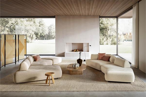 Capriccio nasce come sistema di sedute modulare: ti consente di combinare liberamente basi lineari, sagomate o a 45°, schienali e cuscini in modo da creare composizioni sempre diverse che spaziano da ampie configurazioni con più moduli collegati, a configurazioni completamente indipendenti.