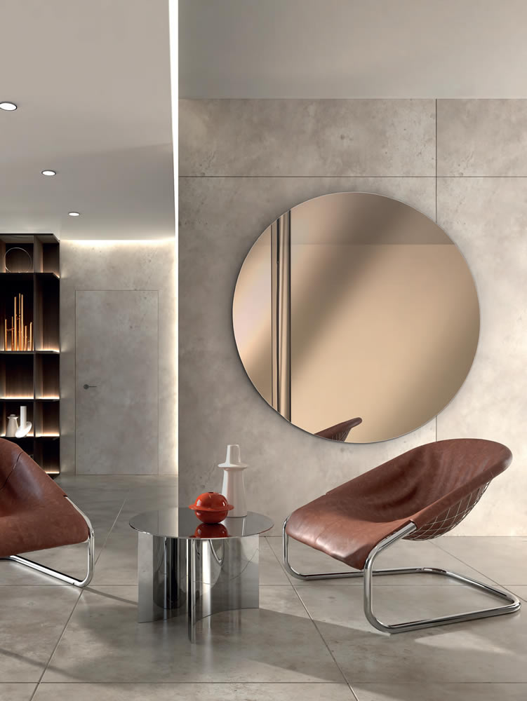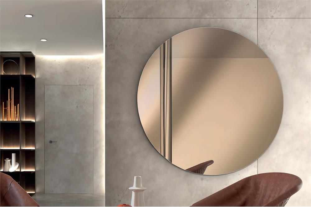 Specchio da parete rotondo con vetro in finitura Argento, Bronzo o Fumé.