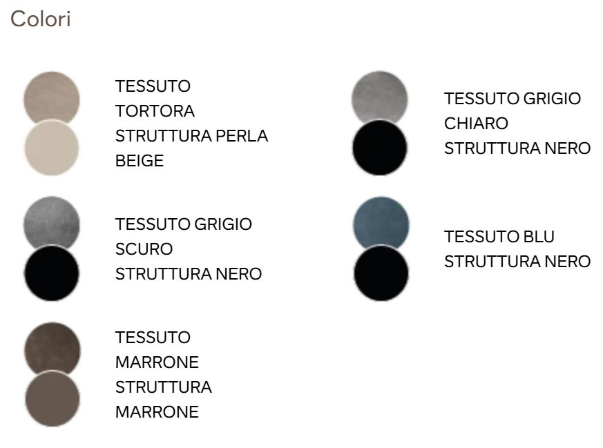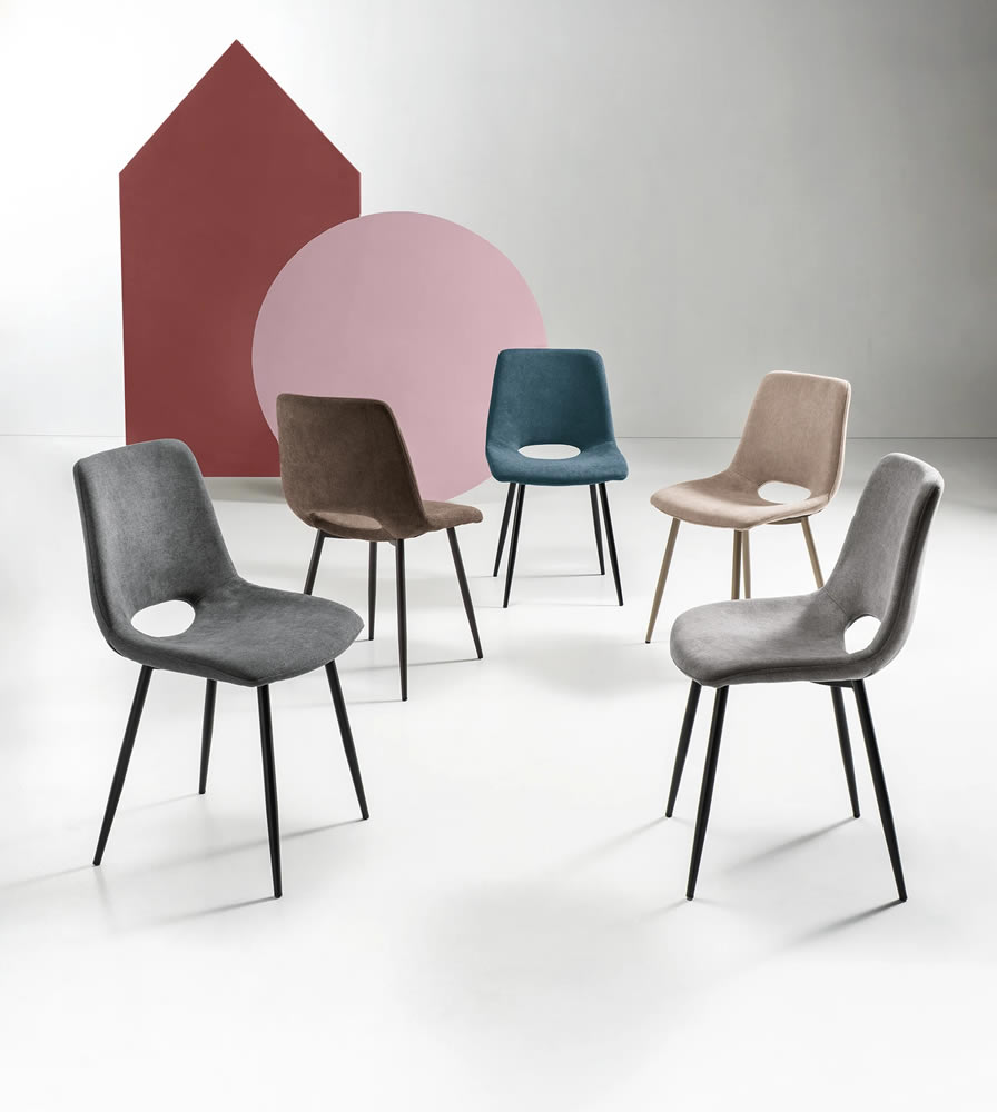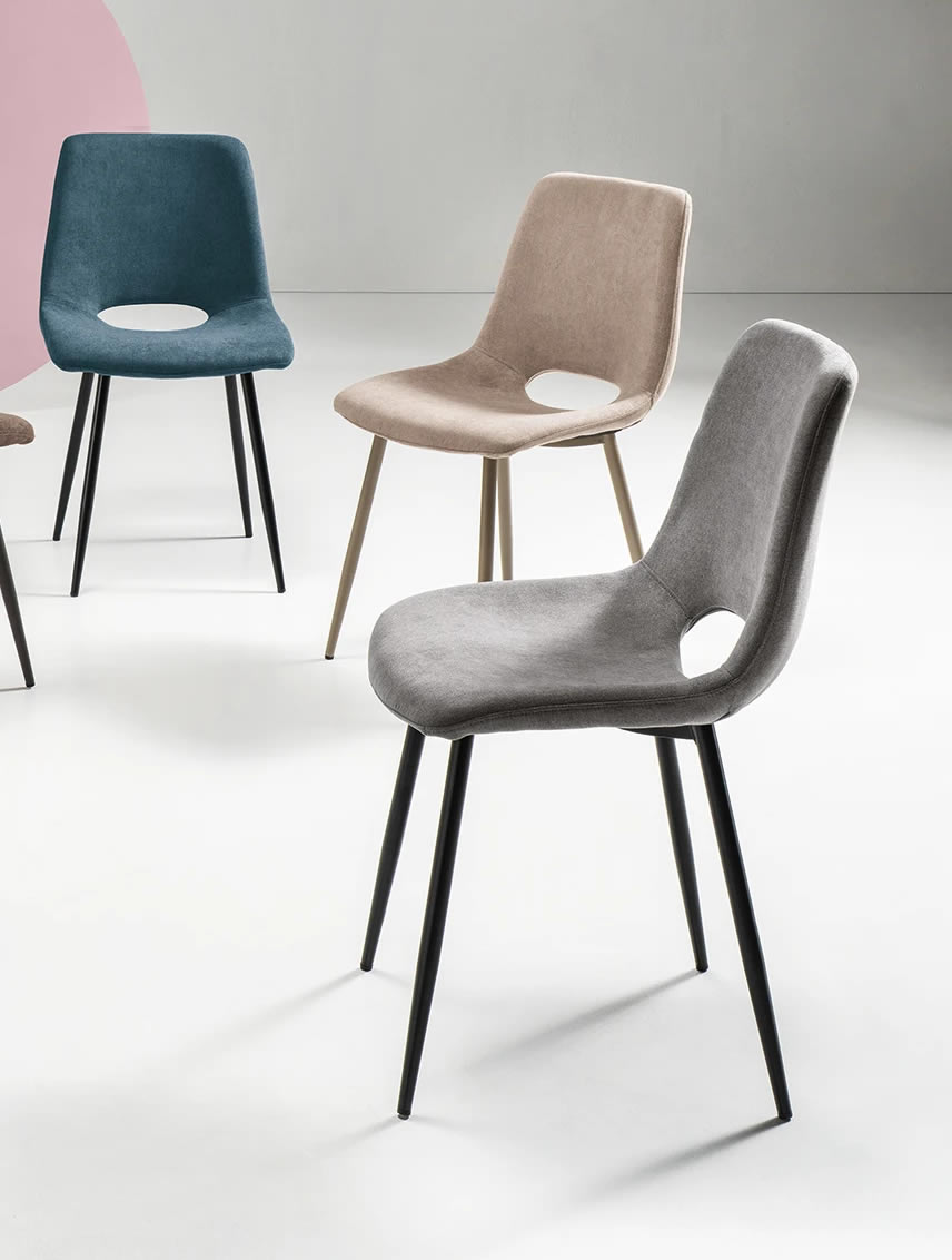 Sedia in tessuto con struttura in metallo. Disponibile in diversi colori.