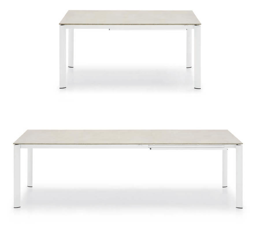 Il Tavolo Eminence Evo ha gambe in metallo a sezione ellittica che restano sempre perimetrali per garantire il comfort di tutti gli ospiti.. La sua capacità di estendersi tramite le allunghe interne permette di adattare facilmente le dimensioni del tavolo in base alle diverse esigenze.