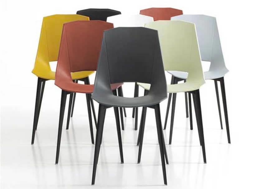 Disponibile in una vasta gamma di materiali, colori e finiture di scocca e fusto Eva Family si inserisce perfettamente negli ambienti più diversi: dall’ufficio agli spazi pubblici, a quelli della casa. La scocca è realizzata in polipropilene rinforzato con fibra di vetro e il fusto in metallo tubolare a sezione triangolare.