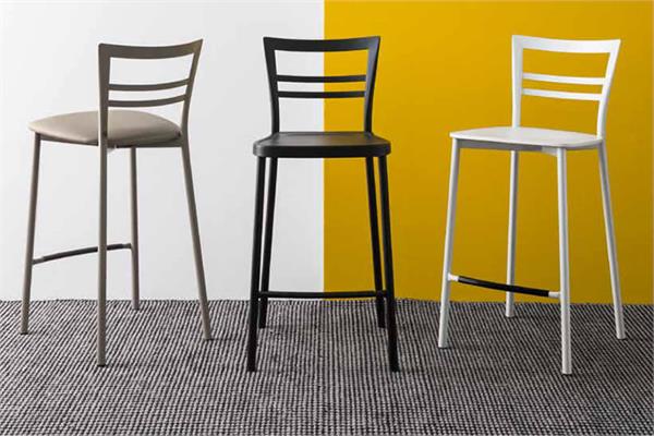 Sgabello modello GO!, struttura in metallo con poggiapiedi e sedile disponibile in molteplici finiture. Sgabello leggero e versatile, grazie alla possibilità di creare abbinamenti sempre nuovi tra la struttura, in metallo verniciato, e i diversi materiali e finiture colore disponibili per i sedili. Lo schienale a mezza altezza garantisce un comodo appoggio della schiena.