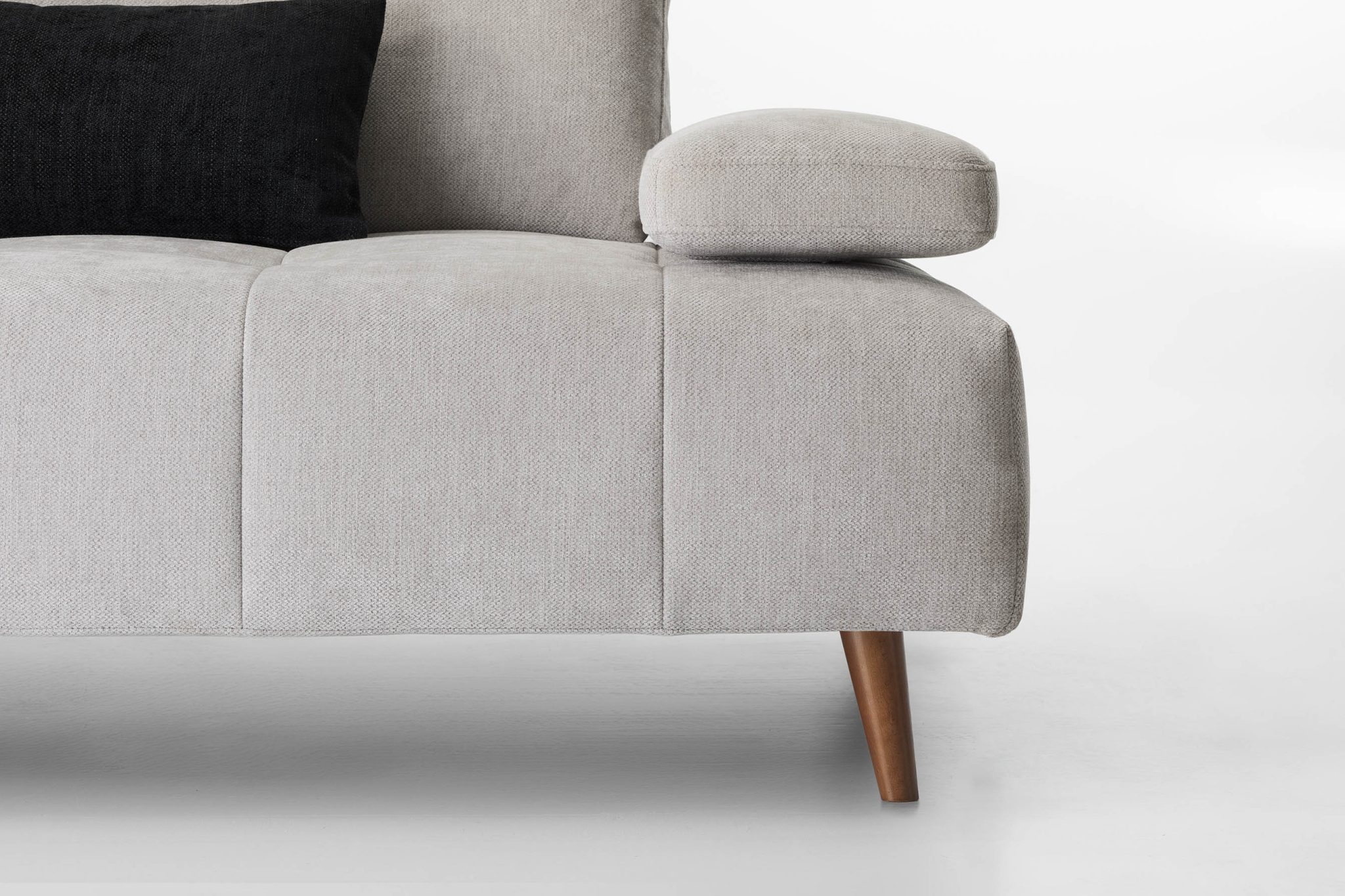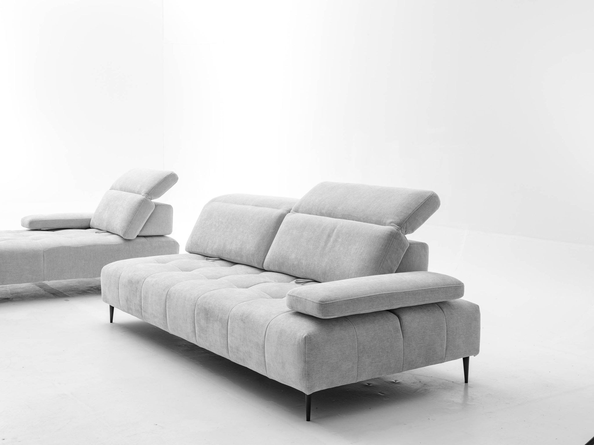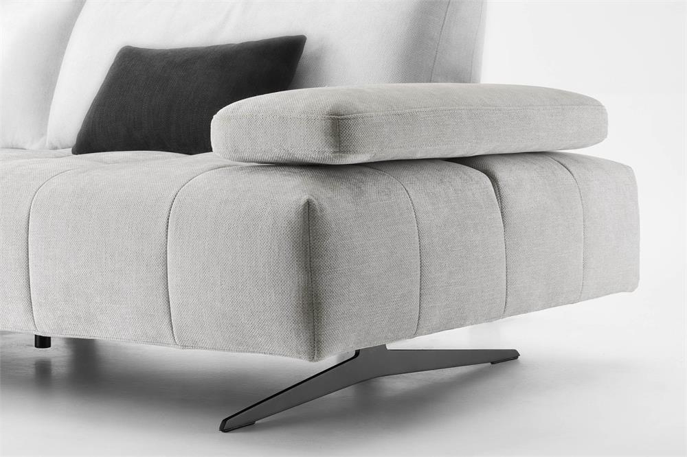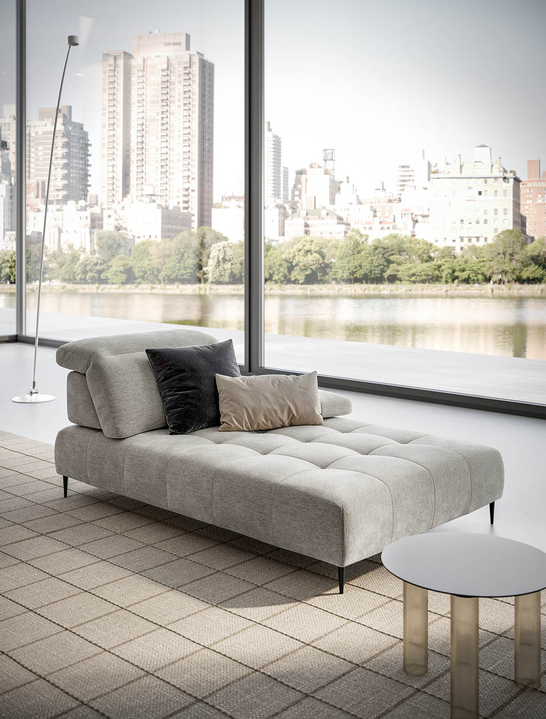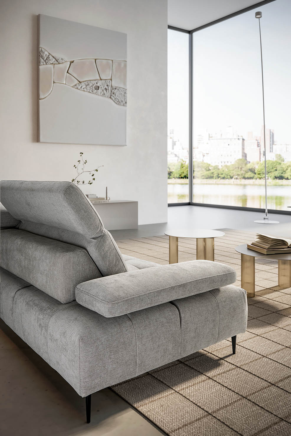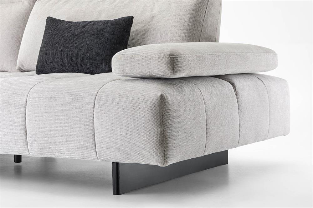 Il profilo è slanciato dai piedini alti 15 cm che alleggeriscono i volumi complessivi, mentre la seduta ampia in Tecnoform – un sandwich di poliuretani indeformabile con inserto in memory foam – invita al comfort profondo, ideale tanto per la conversazione quanto per i momenti di riposo.