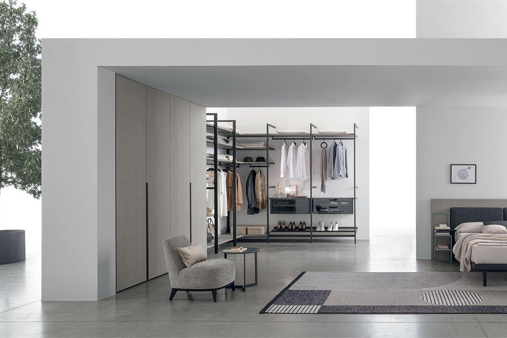 Liberty è una cabina armadio formata da telai in metallo fissati a parete e a soffitto.
