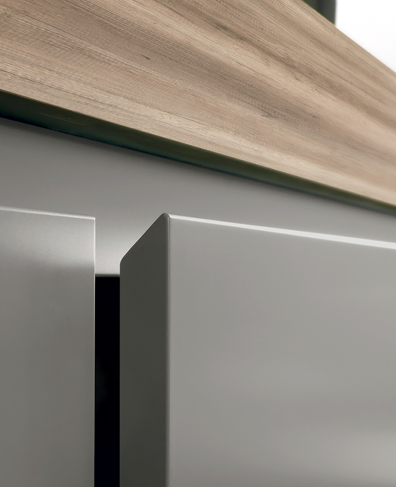 Un progetto senza tempoLa semplicità della forma data dall’assenza di una maniglia. Un fattore che aggiunge pulizia togliendo un elemento caratterizzante. Su questo presupposto si basa il sistema M2.