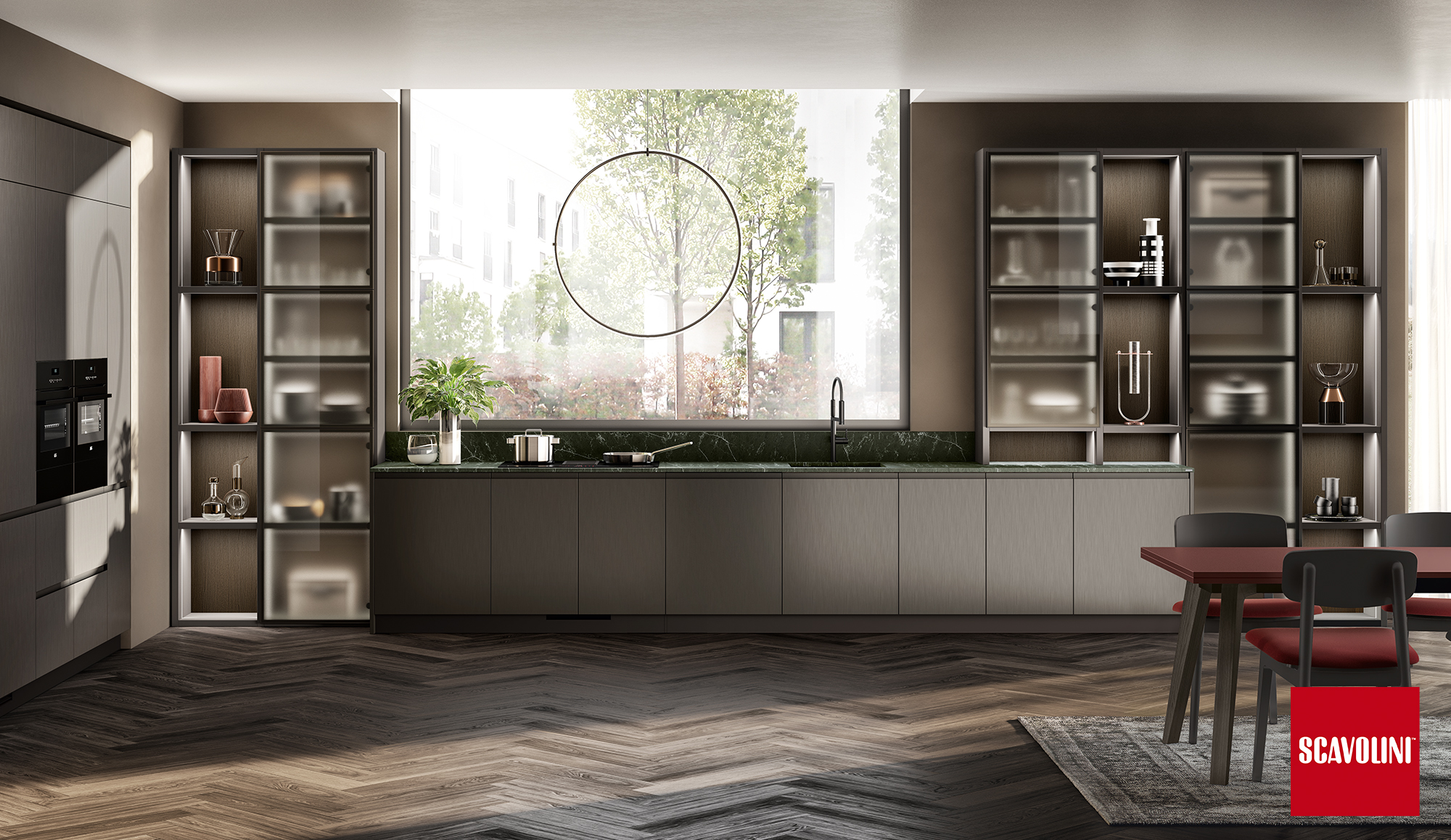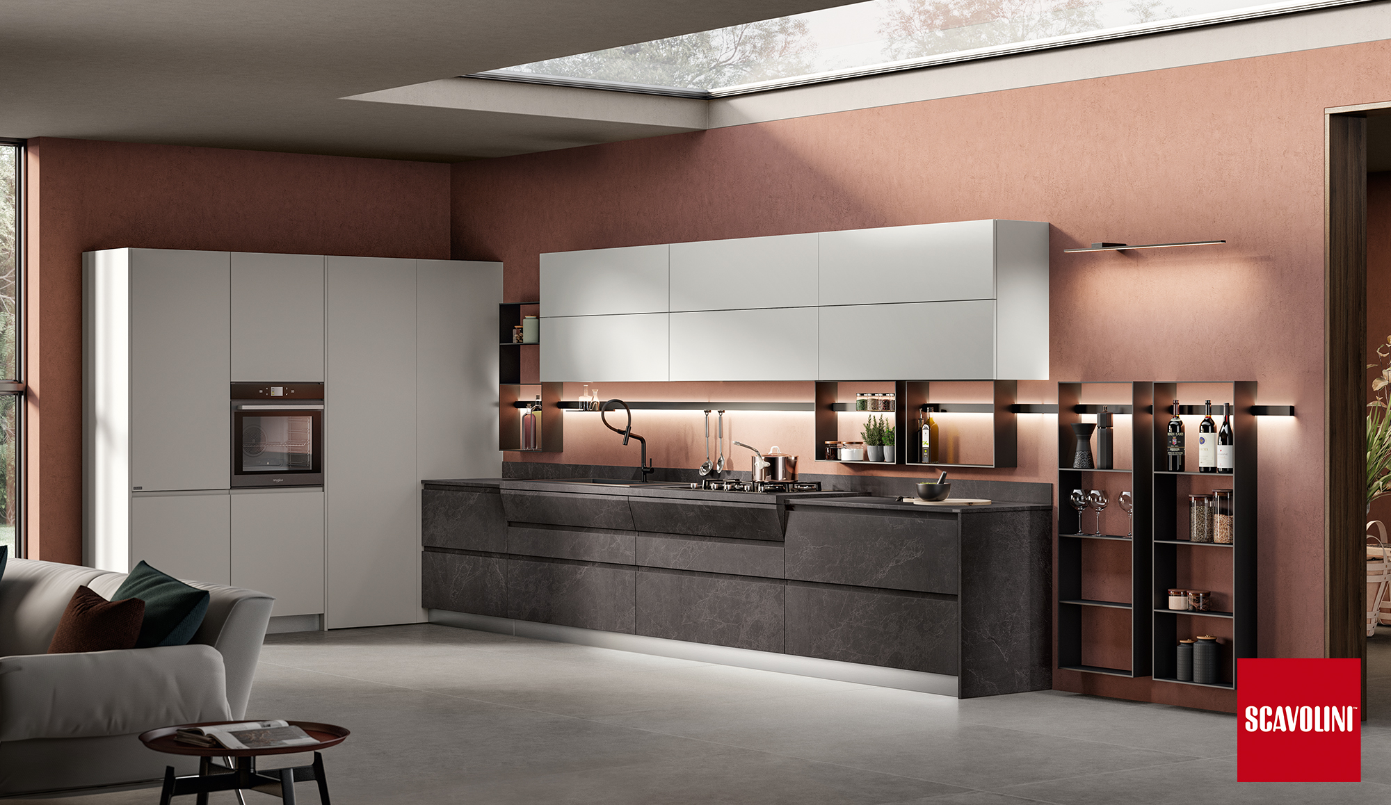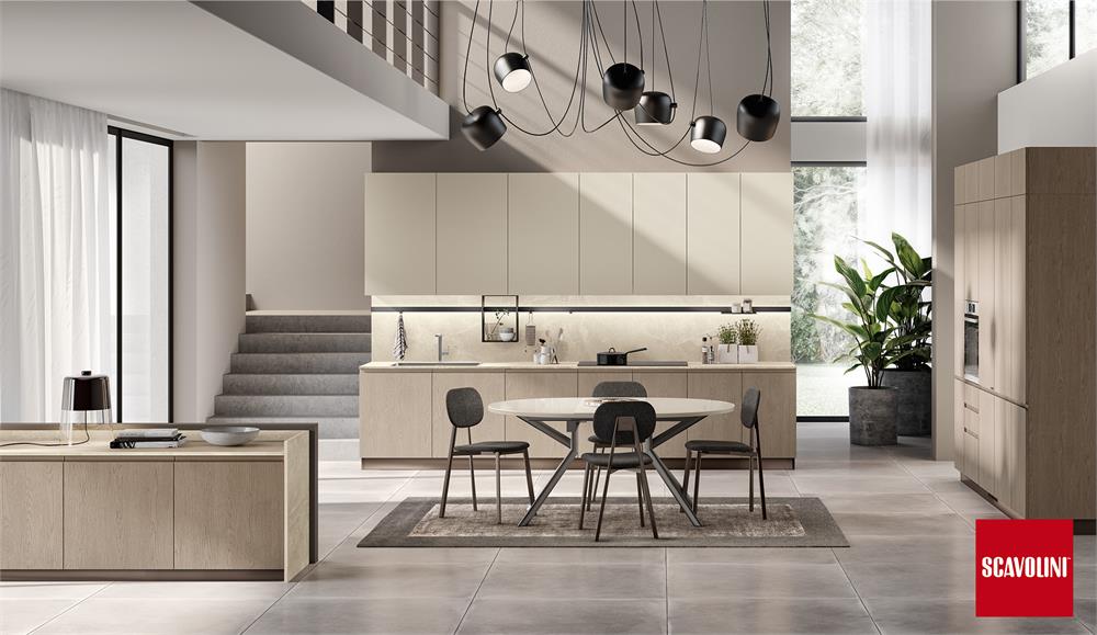 Il progetto Motus di Scavolini, disegnato da Vittore Niolu, coniuga funzionalità e convivialità, privato e socialità.