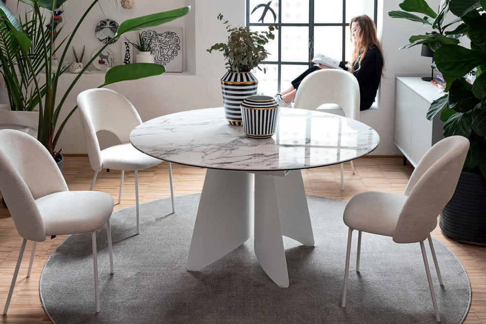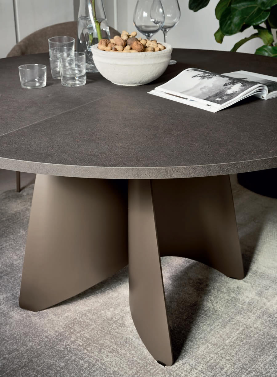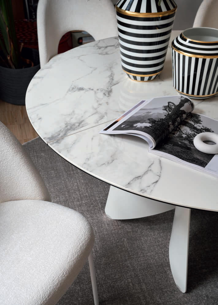 Leggera e quasi sospesa, la base delicatamente curvata in lamiera del tavolo Orion evoca l'immagine di una ballerina sulle punte. Questa struttura elegante è disponibile in tre varianti: rotonda e rettangolare e a botticella. Grazie alla sua versatilità, il tavolo Orion si adatta perfettamente a qualsiasi esigenza di stile. Inoltre, i piani disponibili in ceramica e nobilitato conferiscono un tocco di raffinatezza e personalizzazione, permettendo di creare un ambiente unico e impeccabile.