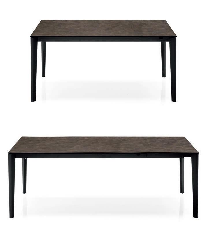 Tavolo con piano in nobilitato L. 160 con 3 allunghe, gambe perimetrali