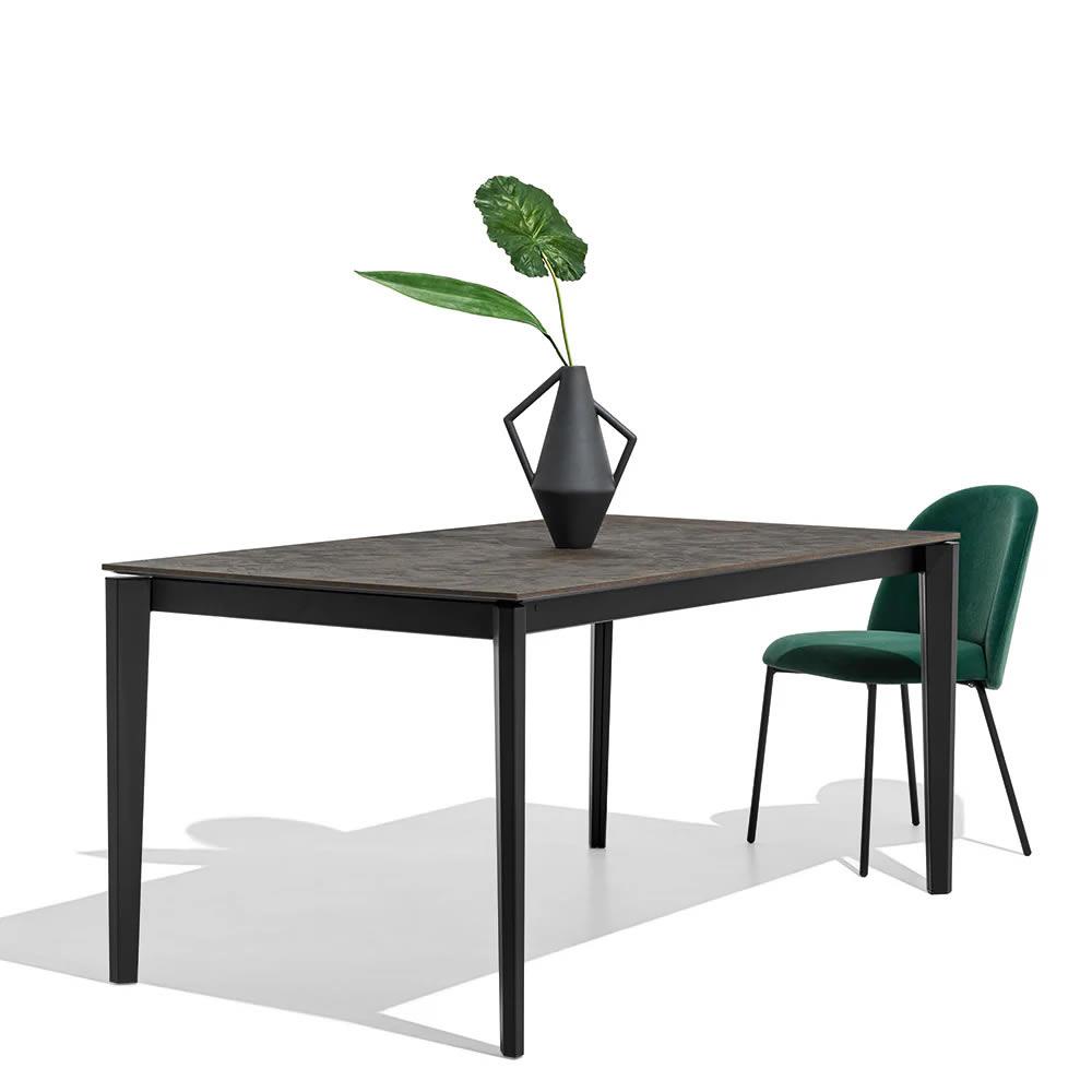 Tavolo con piano in nobilitato L. 160 con 1 allunga, gambe perimetrali