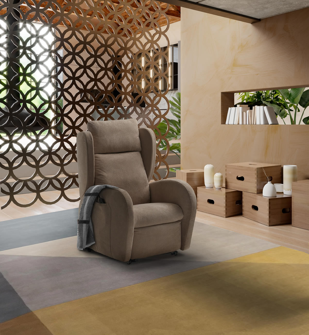 Completa di due motori che permettono movimenti indipendenti di schienale e poggiapiedi, per una perfetta regolazione del confort di seduta. Completa di movimento Lift alzapersona. Parzialmente sfoderabile.