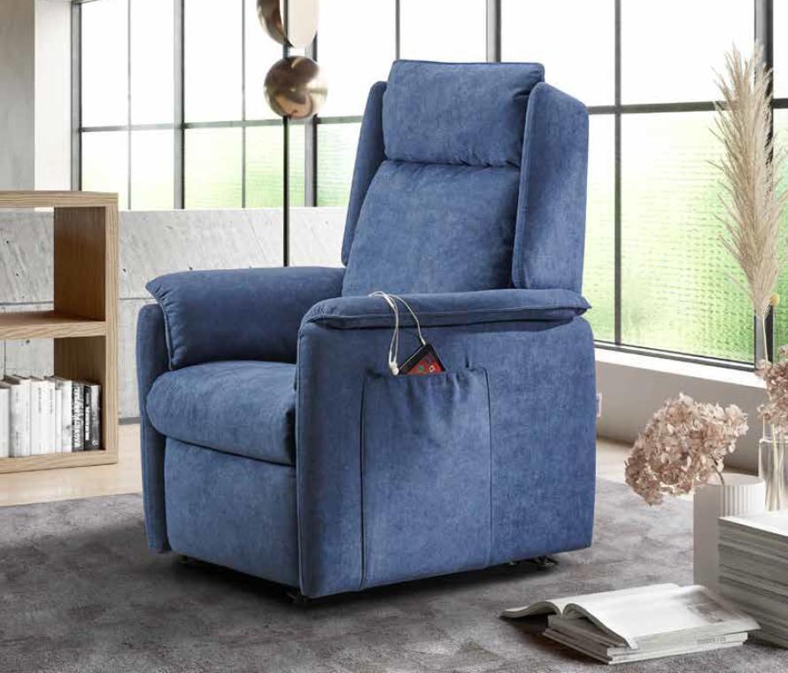 Completa di due motori che permettono movimenti indipendenti di schienale e poggiapiedi, per una perfetta regolazione del confort di seduta. Completa di movimento Lift alzapersona. Parzialmente sfoderabile.