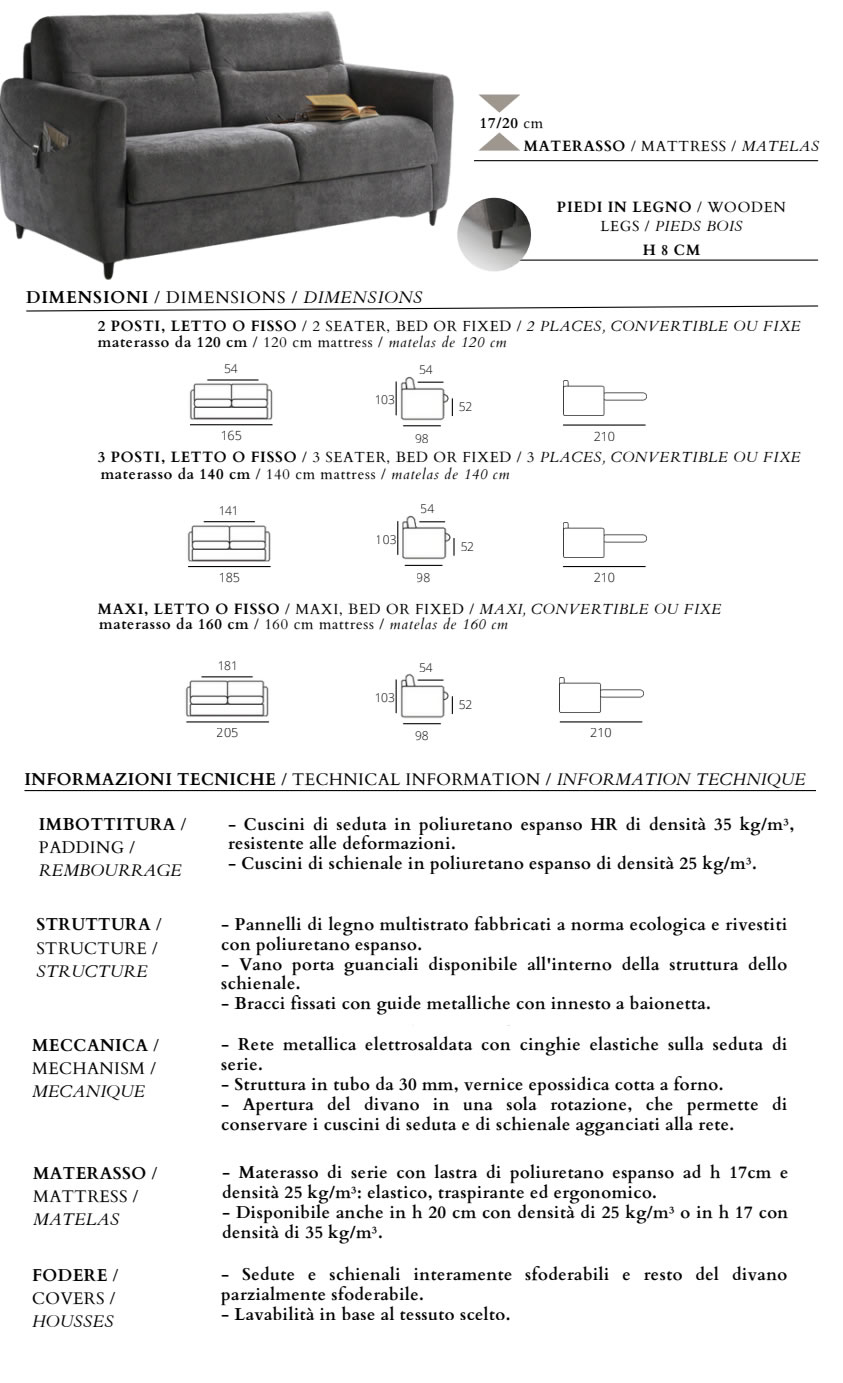 All'interno dello schienale ha un vano portaguanciali per riporre al suo interno cuscini e coperte durante il giorno.