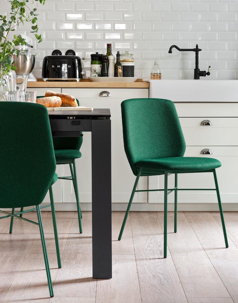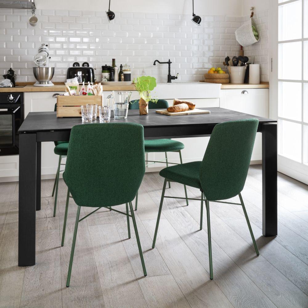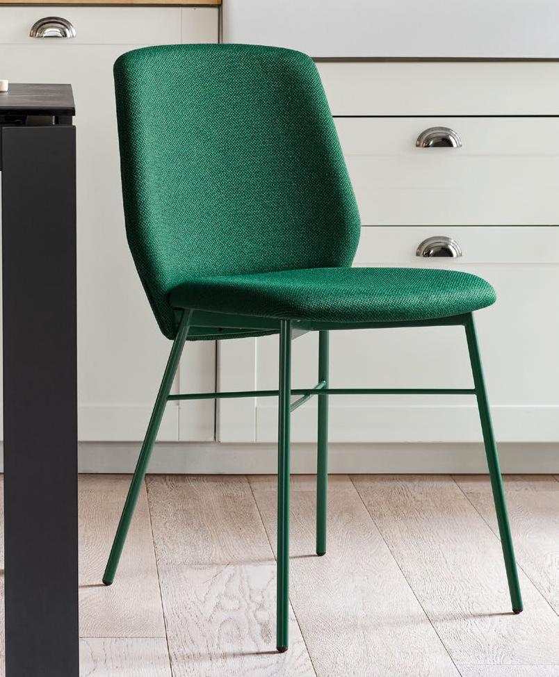 Sedia SIBILLA, con fusto in metallo, in versione imbottita e rivestita in tessuto non sfoderabile. Moderna e funzionale, è perfetta per la zona dining.