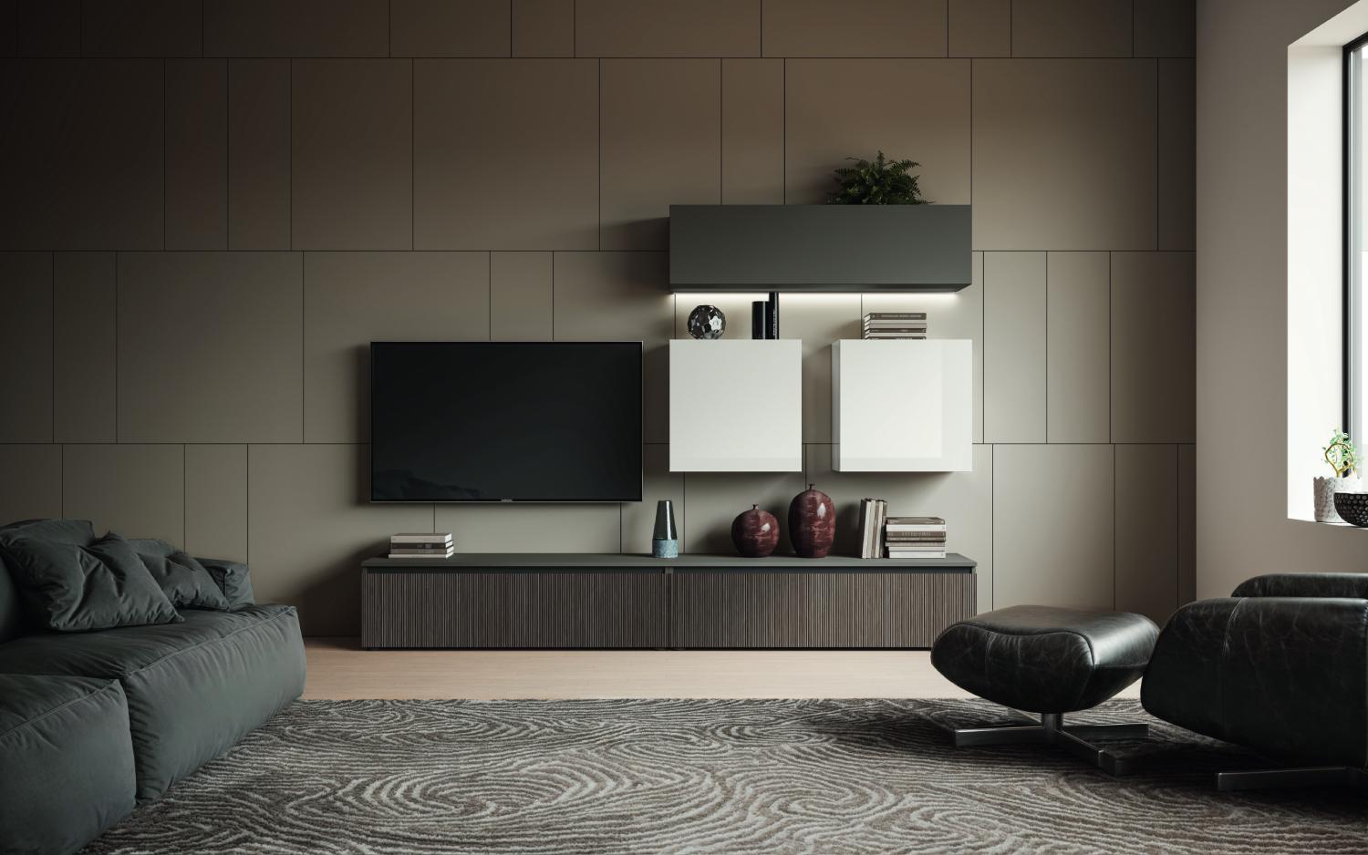 Con la nostra collezione soggiorno Imab vogliamo portare in casa un’idea di arredo dal mood elegante e raffinato che si contraddistingue per un accostamento sapiente di elementi di design e soluzioni modulari, che coniugano estetica e funzionalità.