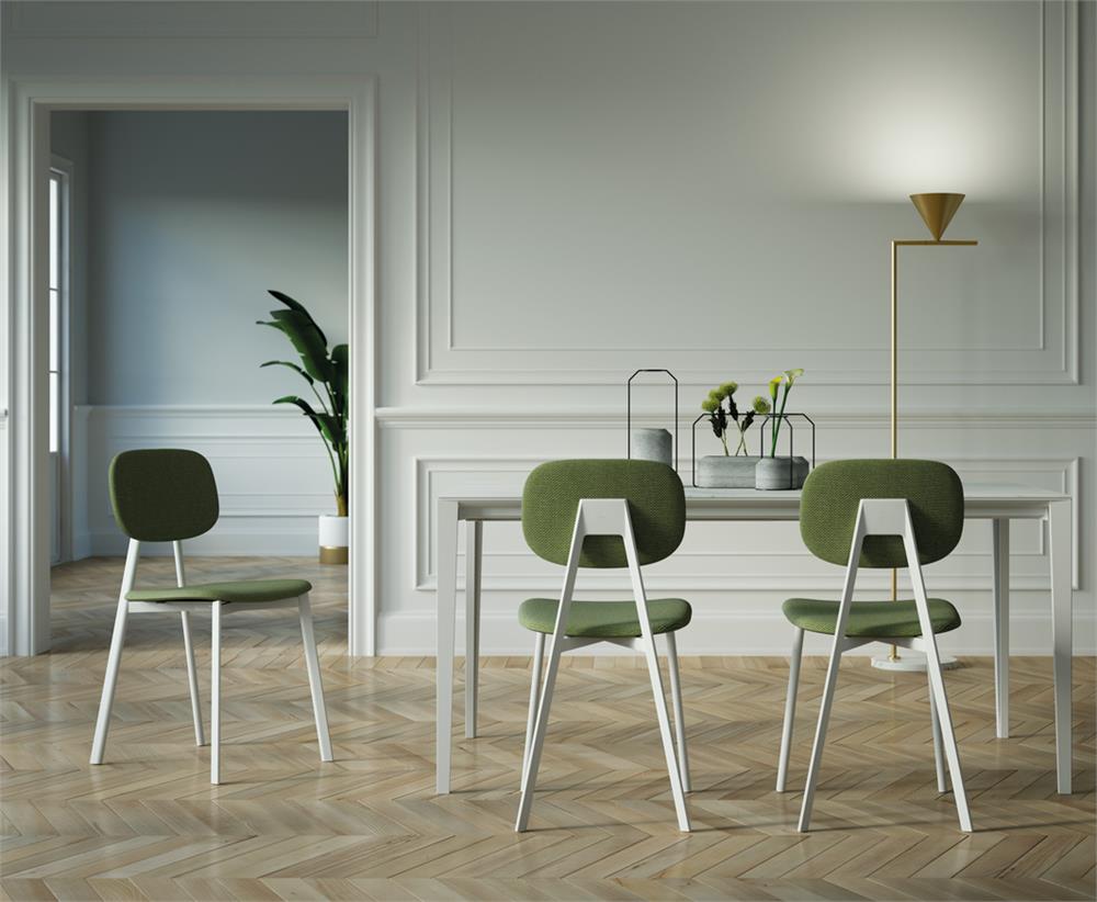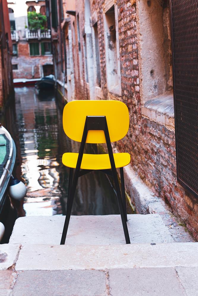 Il nome della sedia prende spunto dalla sua estetica, che ci riporta ai primi anni nelle aule di scuola. La struttura è in acciaio tagliato a laser con giunto in pressofusione di alluminio, sul quale monta lo schienale con un meccanismo a scomparsa. È una sedia moderna che ben si adatta a vari ambienti della casa, così come risulta perfettamente adeguata anche a spazi pubblici. La versatilità e la funzionalità di Tata è accentuata dalla notevole varietà e combinazione di colori e materiali.