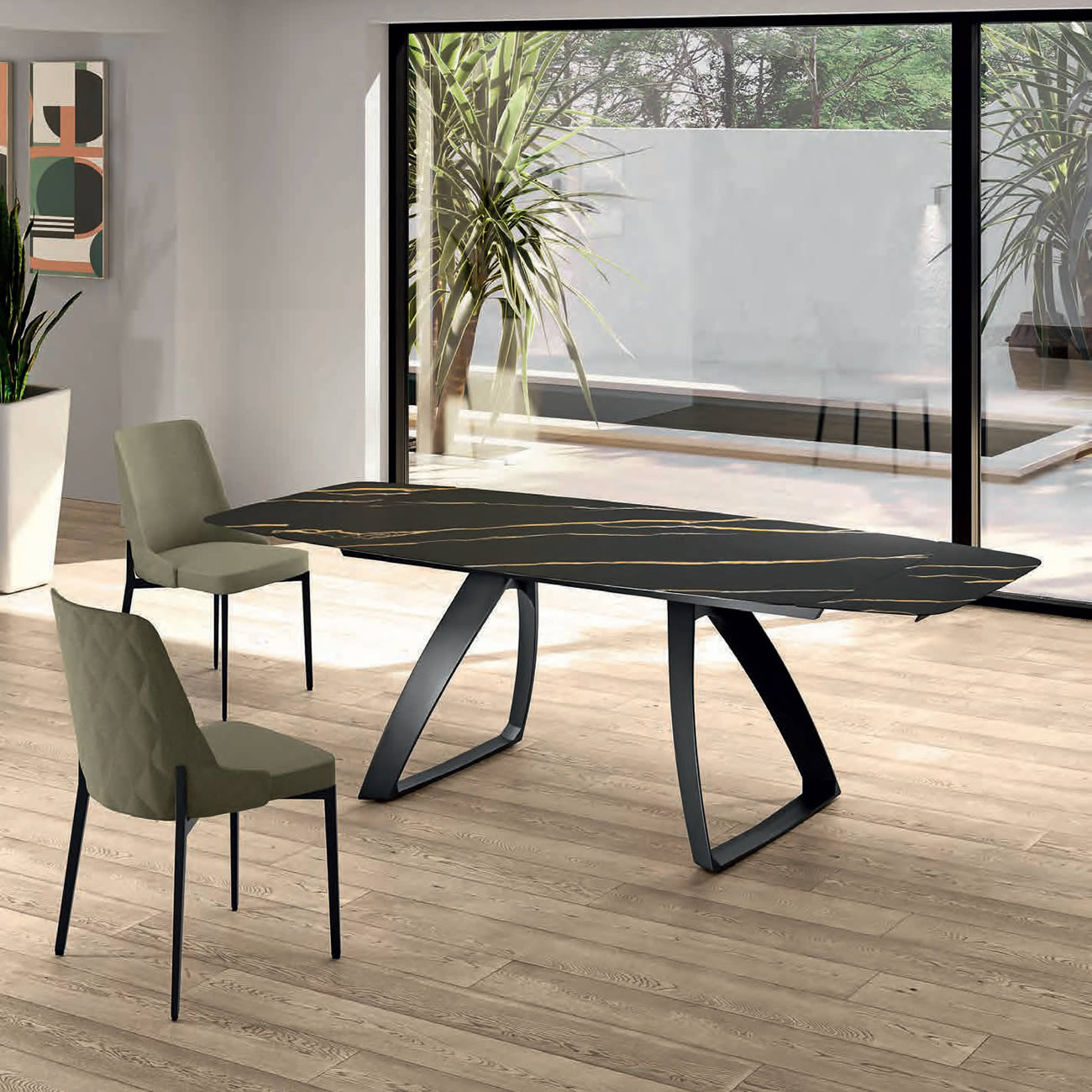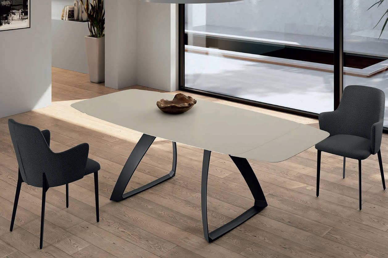 Tavolo allungabile con top in ceramica.