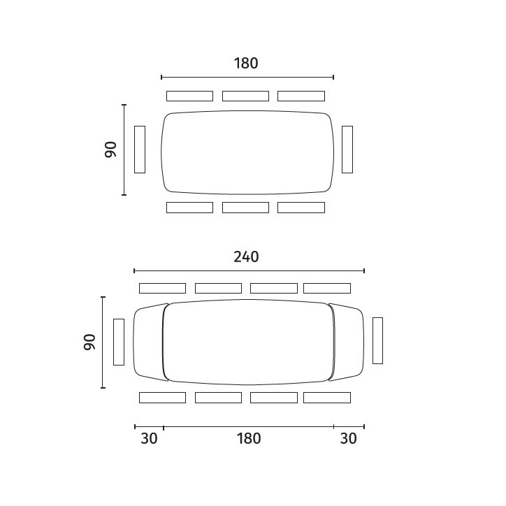 Misure: L. 180 (all. 240) P. 90 H. 76