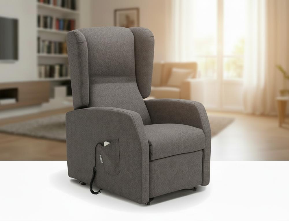 Completa di due motori che consentono movimenti indipendenti di schienale e poggiapiedi, per una perfetta regolazione del confort di seduta. Completa di movimento Lift alzapersona. Parzialmente sfoderabile.