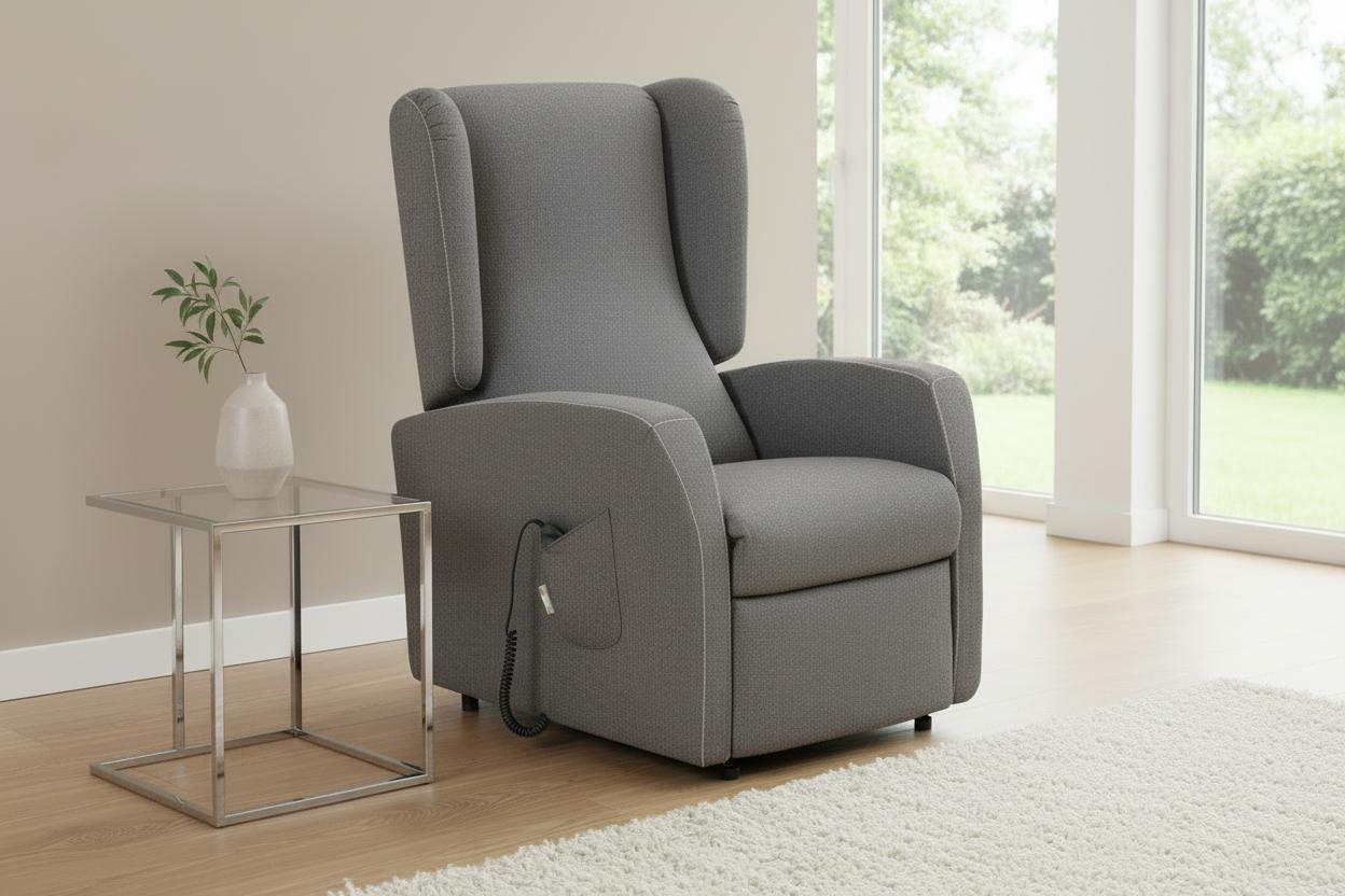 Completa di due motori che consentono movimenti indipendenti di schienale e poggiapiedi, per una perfetta regolazione del confort di seduta. Completa di movimento Lift alzapersona. Parzialmente sfoderabile.
