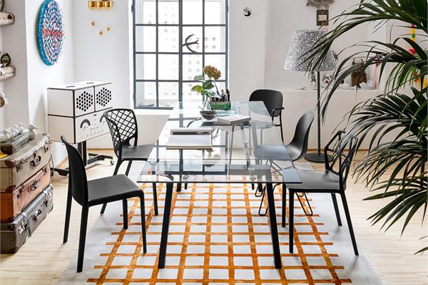 Zeffiro è il tavolo allungabile con piano in vetro.