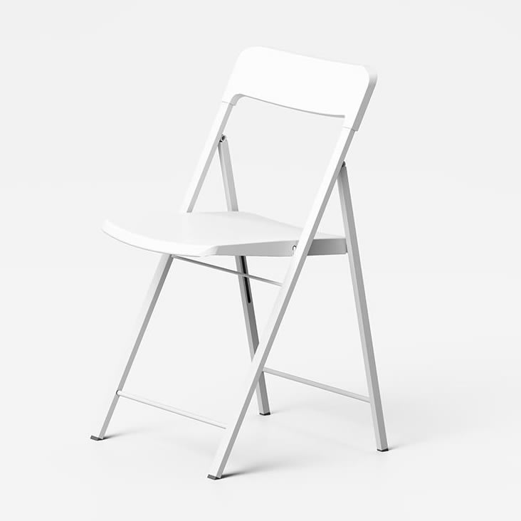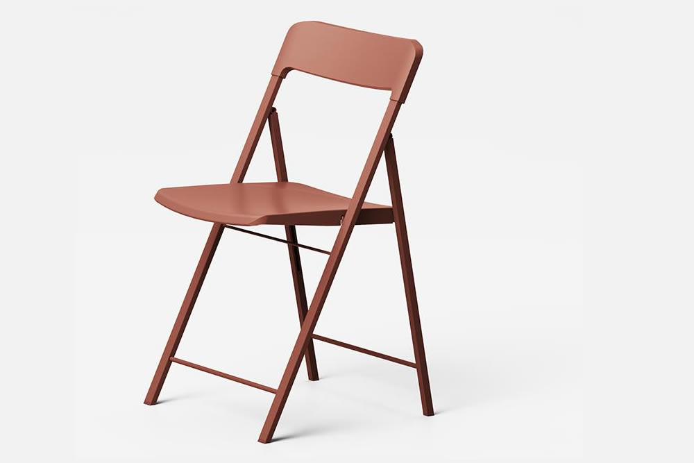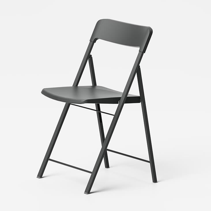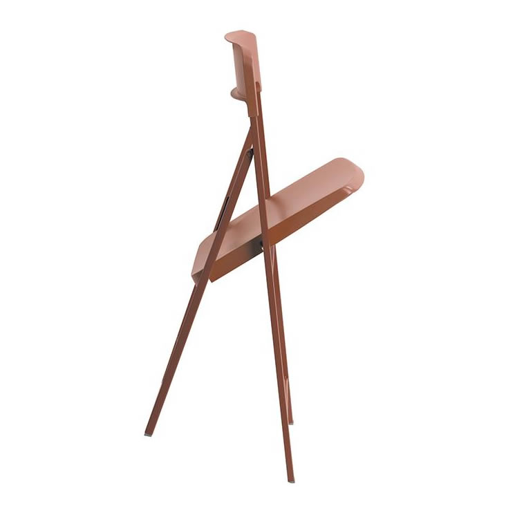 Sedia pieghevole con struttura in acciaio verniciato seduta e schienale in polipropilene.