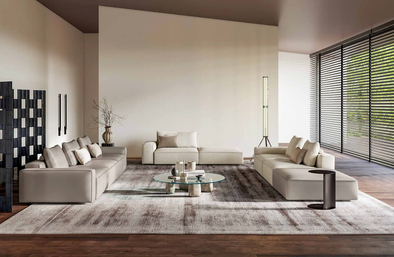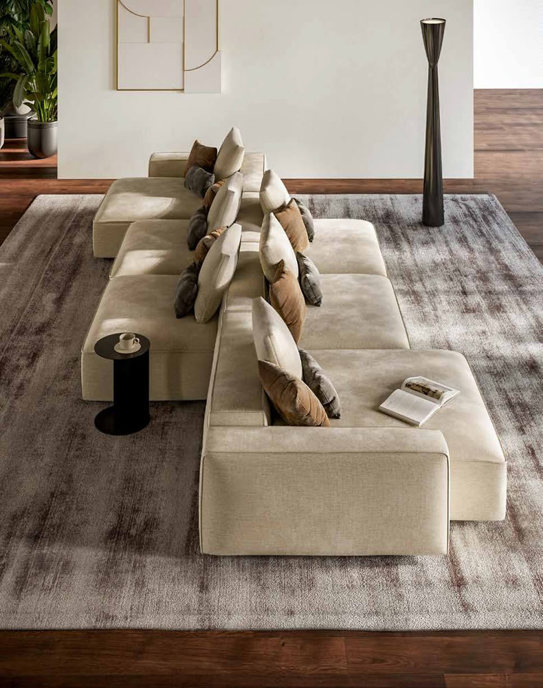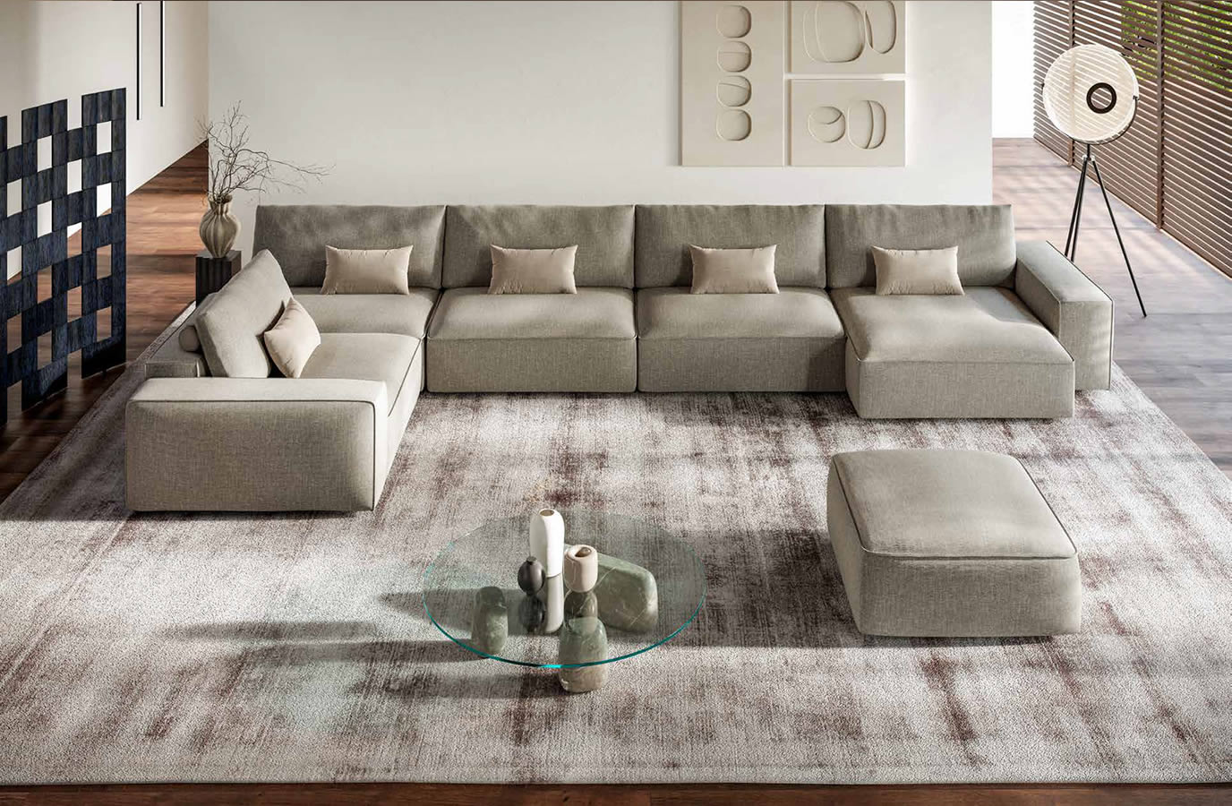 Divano con penisola in tessuto o texil completamente sfoderabile Disponibile in varie misure e configurazioni.