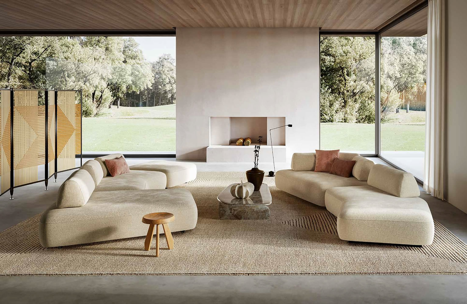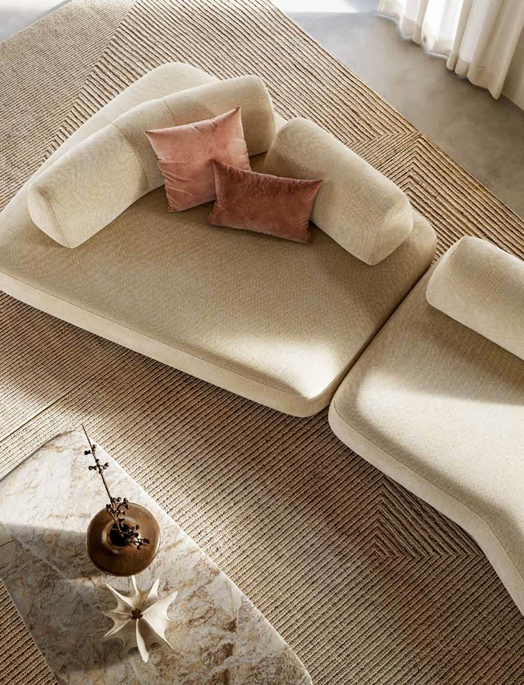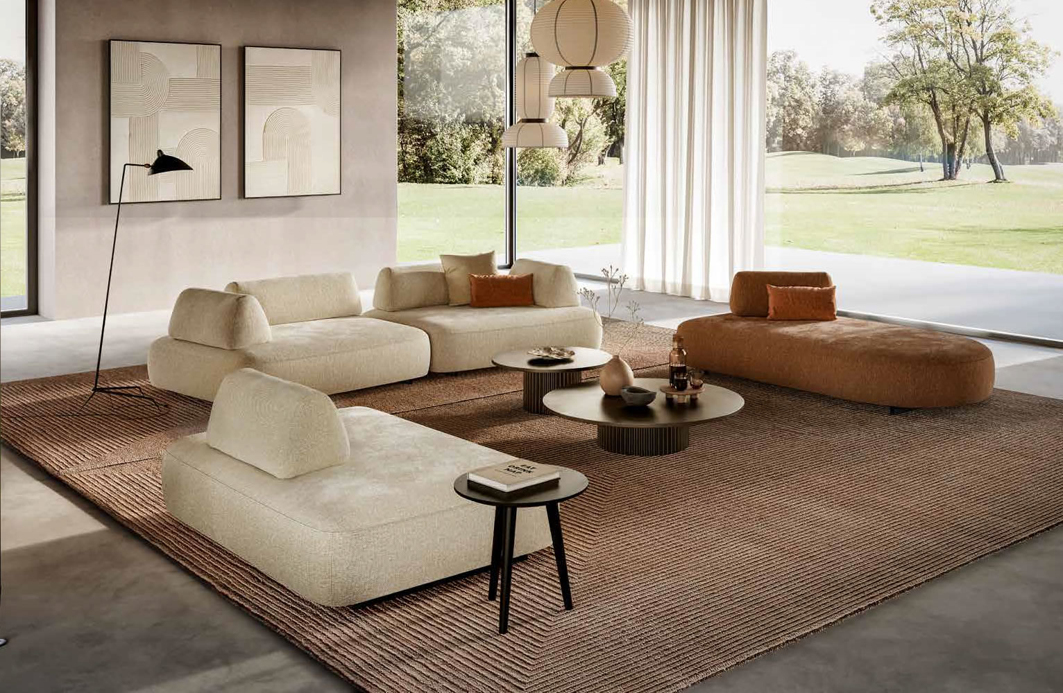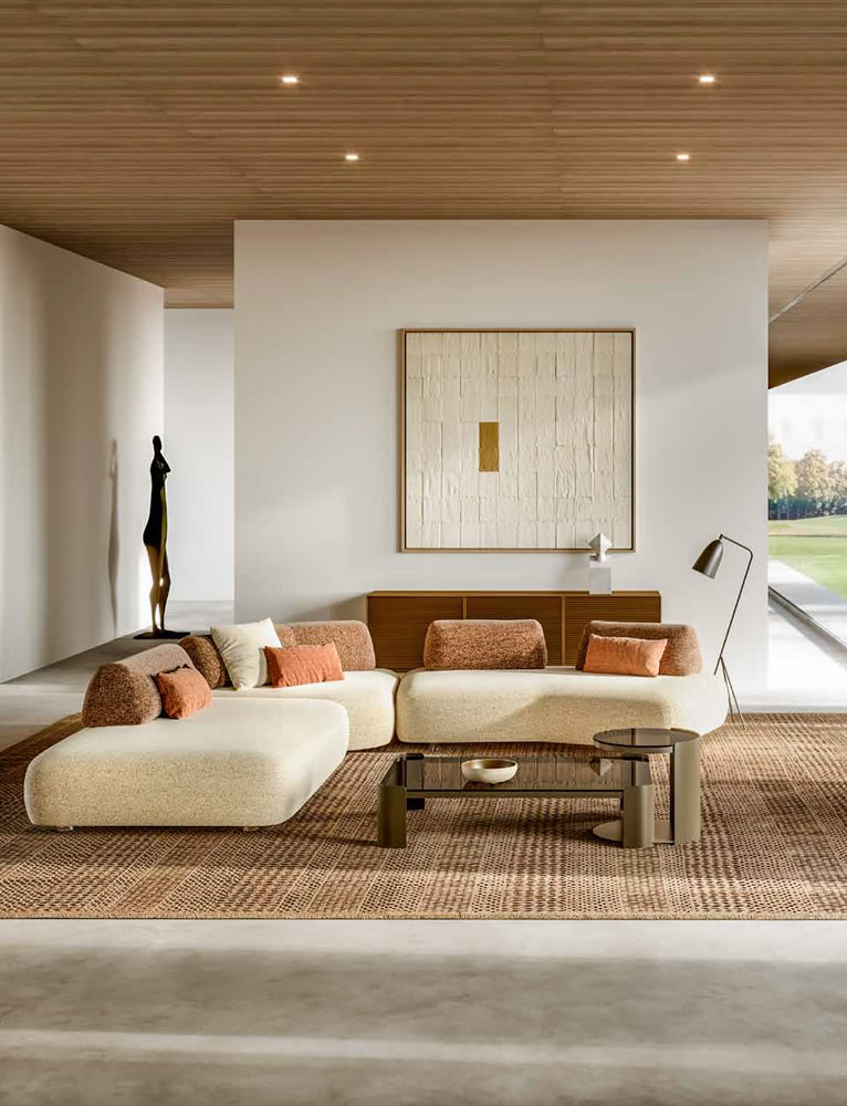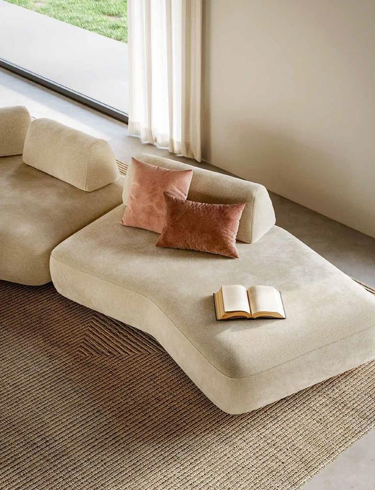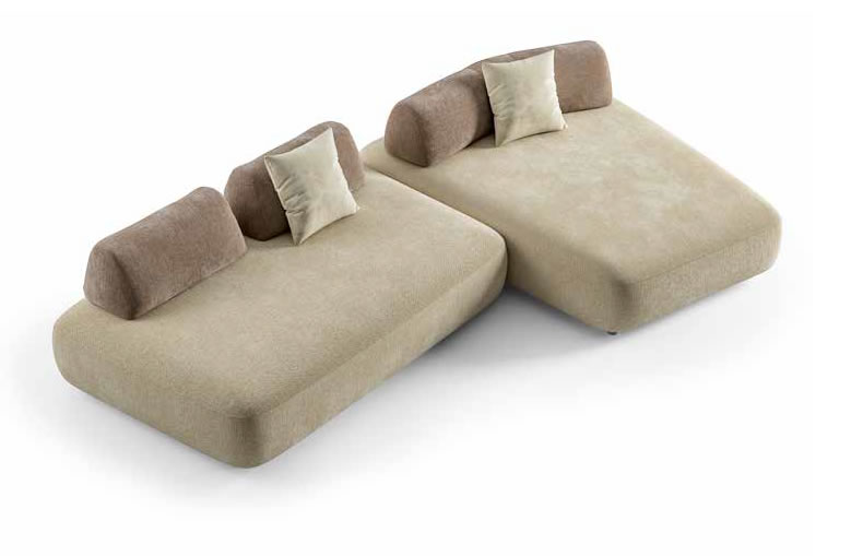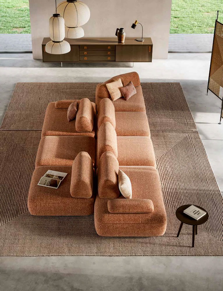 Divano modulare sfoderabile. Composto da: - Base 3 posti - Penisola - Schienale Mambo - Schienali mini Capriccio.