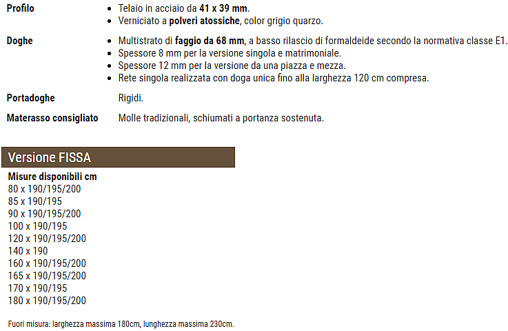 Disponibili altre misure. Vedere scheda Specifiche tecniche.