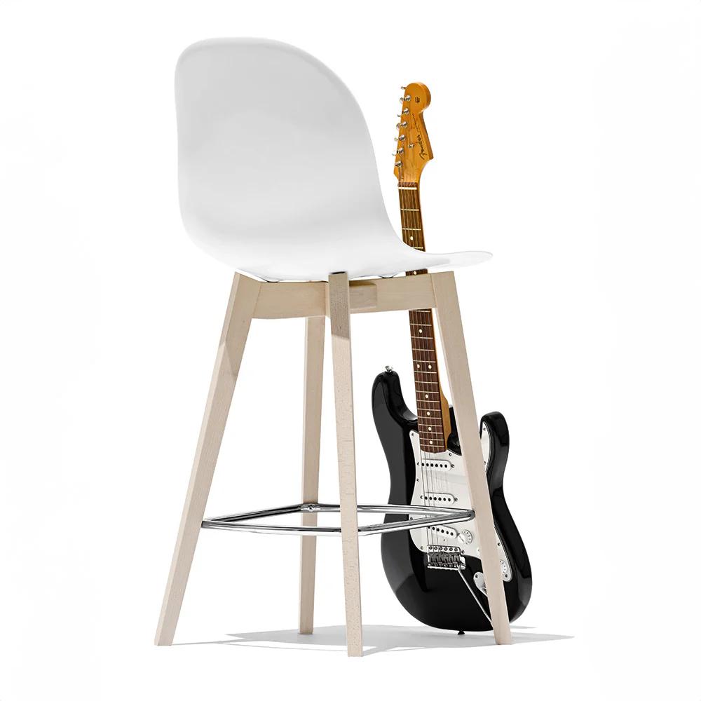 Sgabello modello ACADEMY con struttura in legno. Le varianti di colore della scocca, abbinabili ai diversi toni del legno e il poggiapiedi cromato, consentono di offrire più di un centinaio di alternative per soddisfare qualunque esigenza estetica e funzionale.