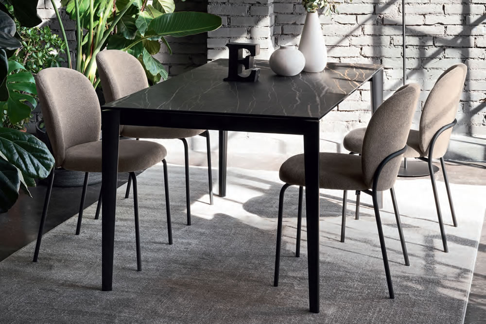il tavolo Artic è un'opzione versatile e funzionale grazie alla sua capacità di allungarsi tramite le allunghe interne. Con i suoi fianchi a sezione arrotondata in metallo verniciato e la varietà di scelta per il piano, questo tavolo si adatta perfettamente alle diverse esigenze di spazio e stile, offrendo un'esperienza di ristorazione confortevole e di classe.