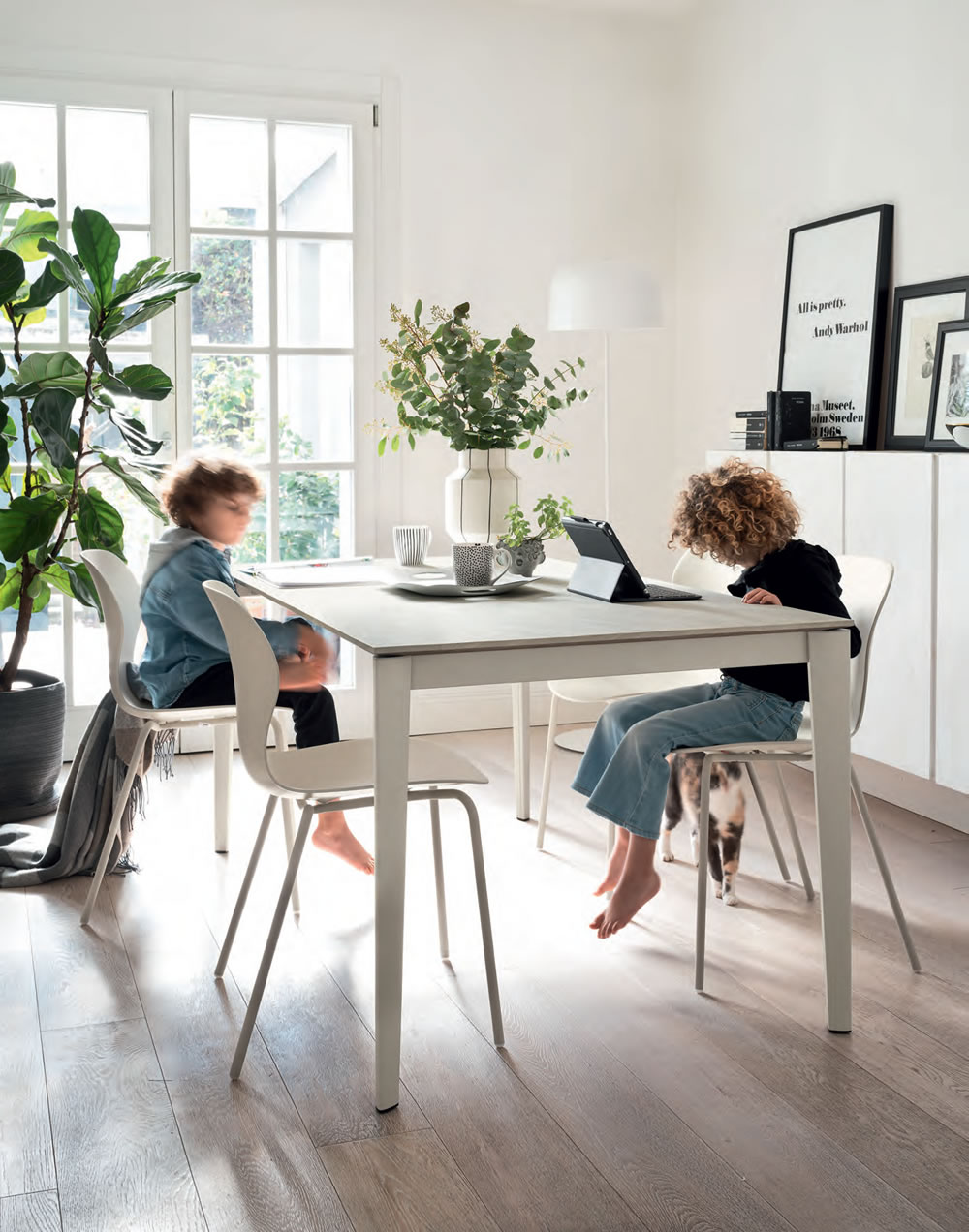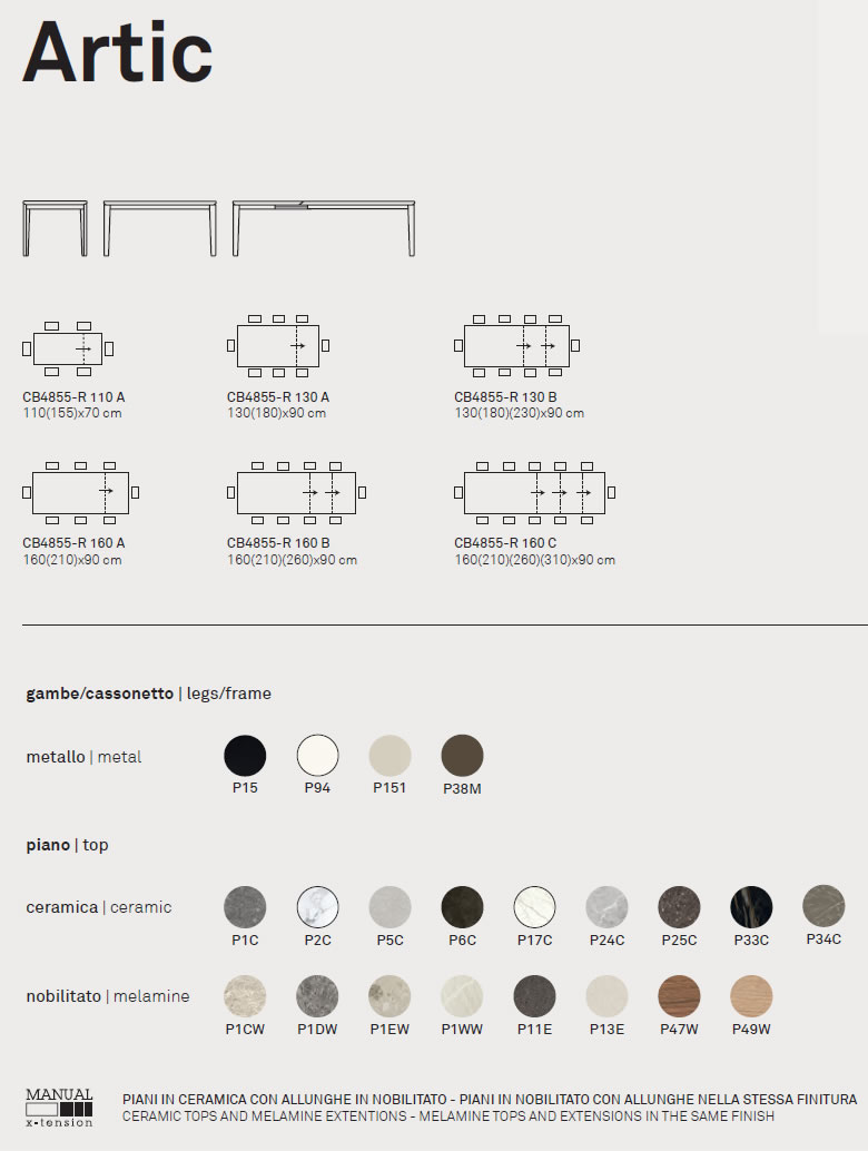 il tavolo Artic è un'opzione versatile e funzionale grazie alla sua capacità di allungarsi tramite le allunghe interne. Con i suoi fianchi a sezione arrotondata in metallo verniciato e la varietà di scelta per il piano, questo tavolo si adatta perfettamente alle diverse esigenze di spazio e stile, offrendo un'esperienza di ristorazione confortevole e di classe.