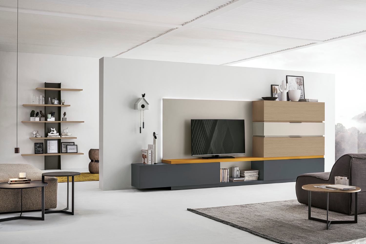 La zona giorno è il luogo dell’accoglienza e del relax. Vi proponiamo mobili e soluzioni componibili per il soggiorno in diverse essenze e colori, capaci di arredare ogni spazio con attenzione alle tendenze più attuali e alle diverse esigenze di spazio.