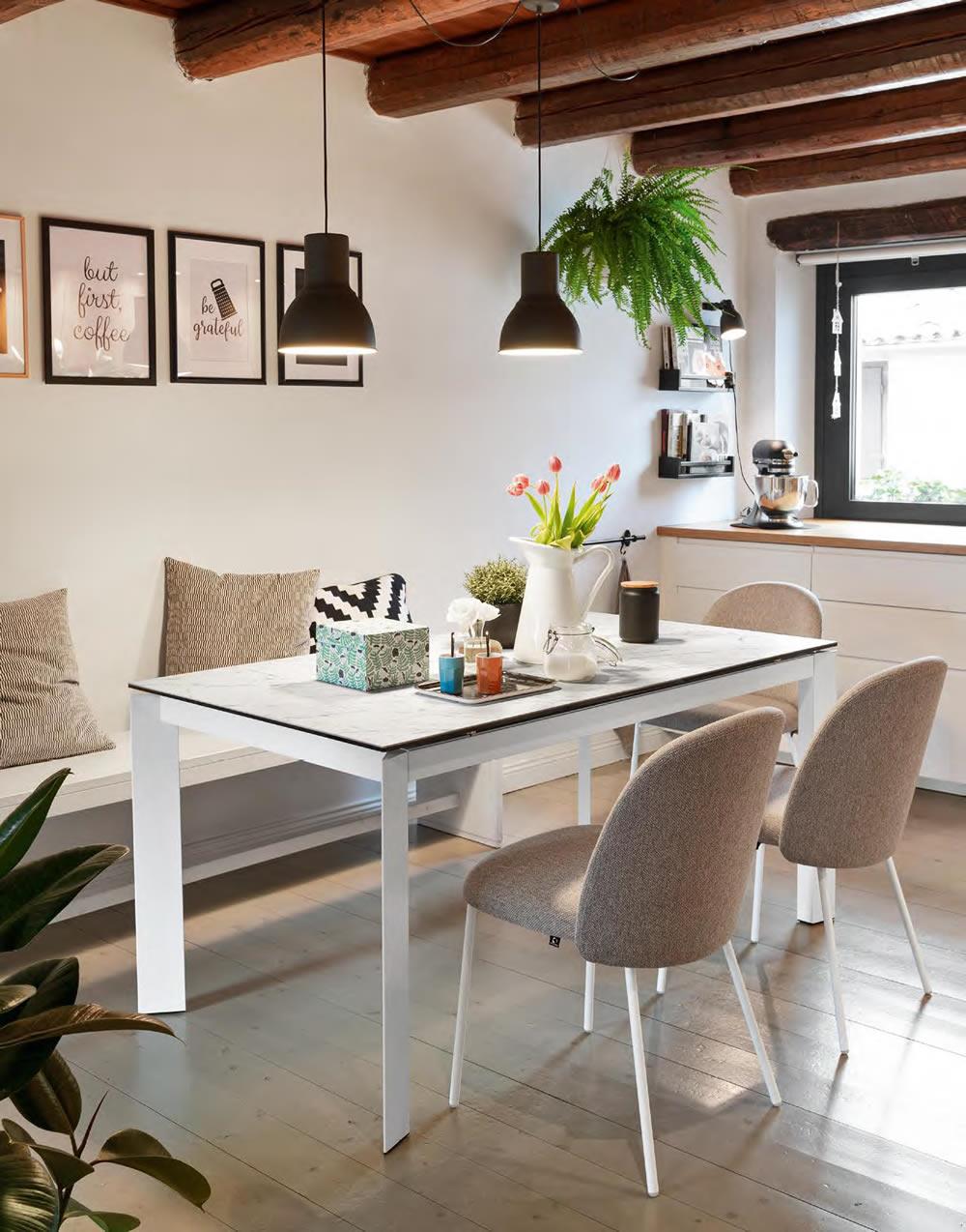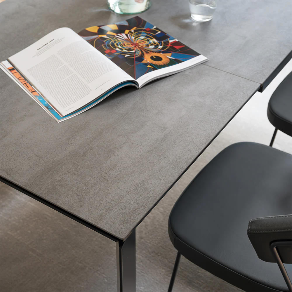 Il tavolo BARON racchiude al suo interno un pratico meccanismo in grado di aumentare la superficie d'appoggio. Tirando verso di sé la struttura, le due gambe dotate di ruote nascoste scorrono da un lato permettendo di estrarre l'allunga. Con un semplice movimento a rotazione l'allunga montata su binari in metallo esce dal suo alloggiamento e si allinea al piano. Le gambe di forma triangolare restano sempre perimetrali garantendo il massimo comfort a tutti gli ospiti