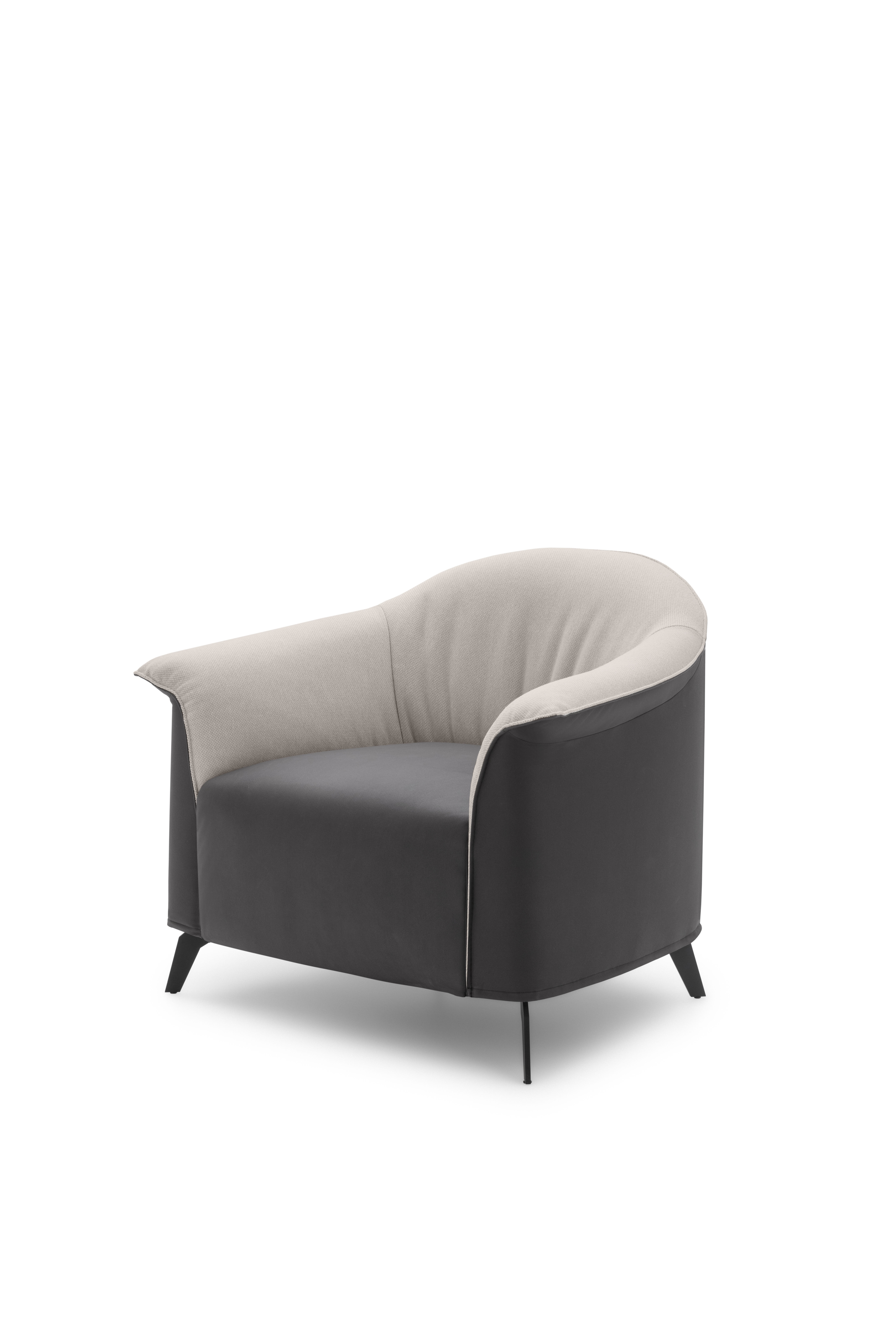 Poltroncina dalla seduta ampia e profonda, Caroline è caratterizzata da decisi e allegri risvolti laterali, resi ancora più evidenti dall’opposizione cromatica del rivestimento.