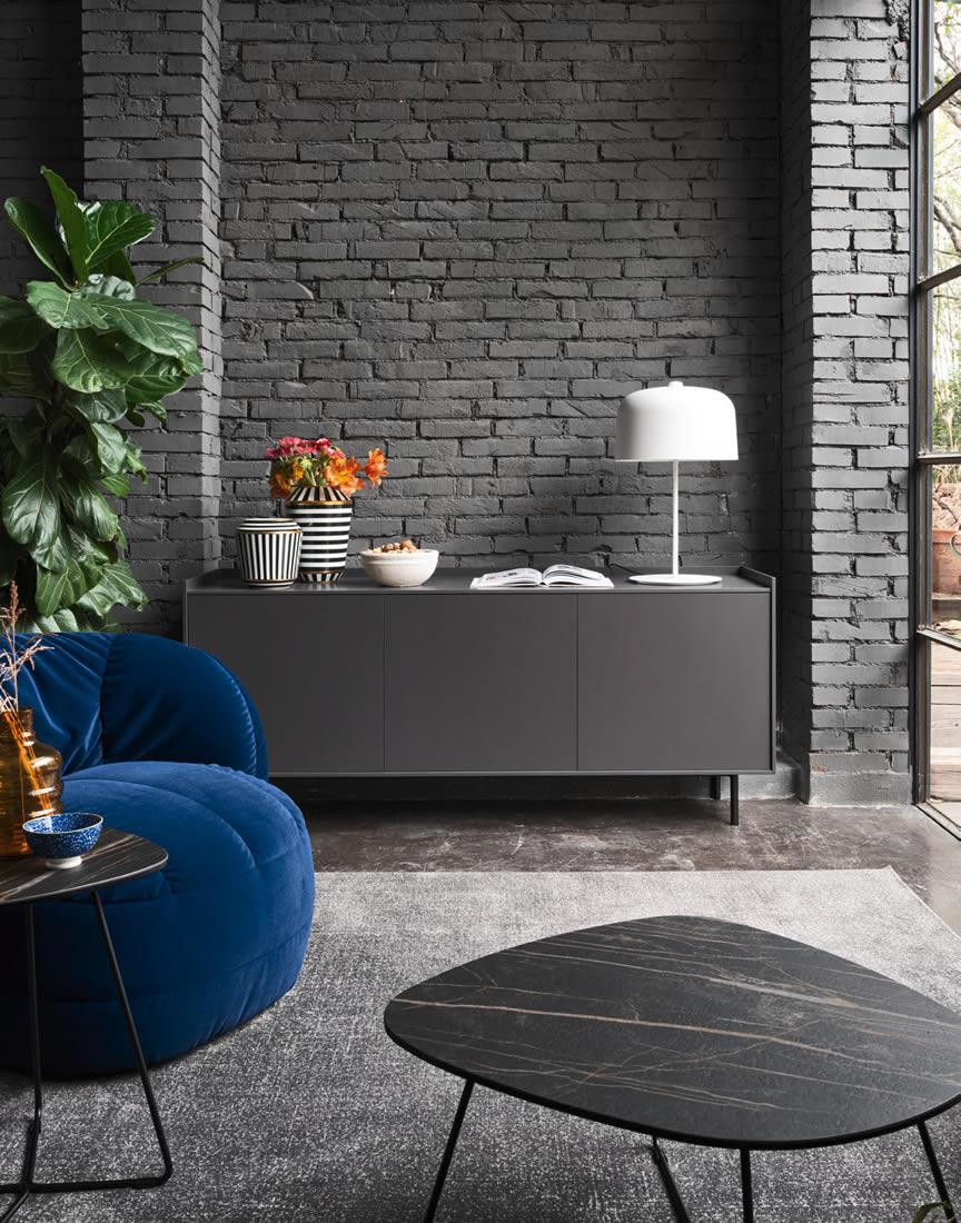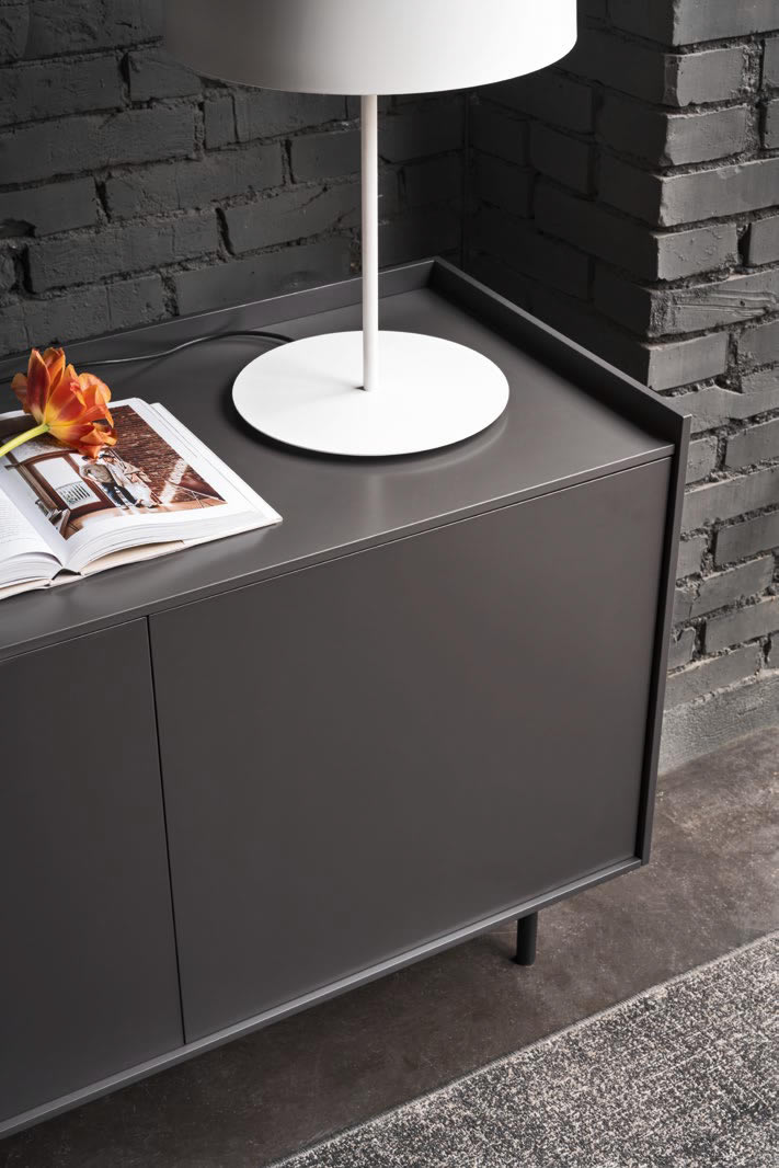 Famiglia di madie Cover, perfette per dare un tocco di stile alla vostra casa. Disponibili in tre misure diverse, queste madie sono dotate di ripiani interni in vetro per offrire organizzazione e leggerezza. Il basamento in metallo conferisce resistenza e linearità, mentre i piani e le ante sono ricoperti da un delicato laccato opaco che dona un tocco di raffinatezza. L'assenza di maniglie sulle ante e il sistema di apertura push-pull rendono l'estetica minimal ed elegante. Il piano strutturato come un vassoio aggiunge un pizzico di originalità alla madia, che può essere utilizzata al centro della stanza grazie alla cura del dettaglio presente anche nella parte posteriore. Adatte ad ogni ambiente e uso grazie alla loro versatilità.