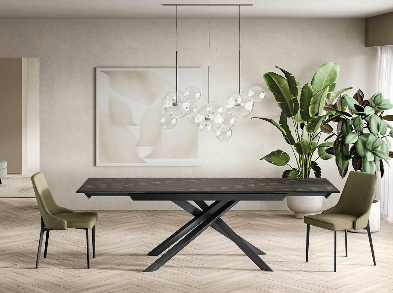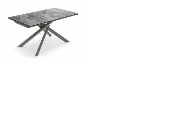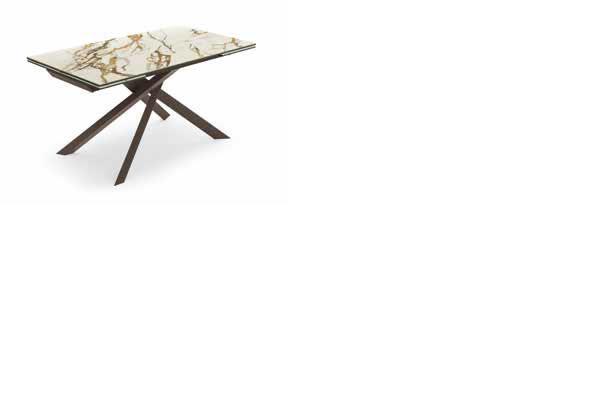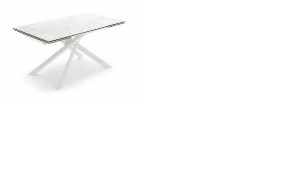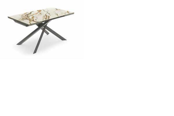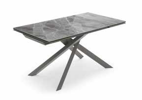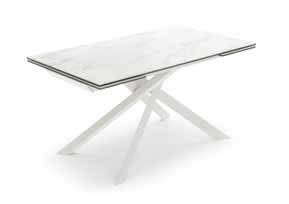 Tavolo allungabile con top in ceramica su vetro. Gambe in metallo verniciato.