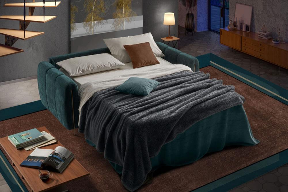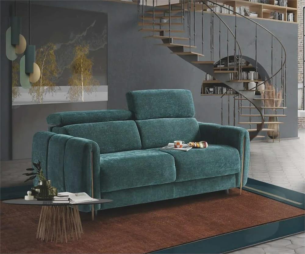 Il divano-letto Daytona è un ode all'eleganza contemporanea, un elemento distintivo per chi cerca un tocco metropolitano nel proprio spazio. le cuciture verticali dei suo braccioli aggiungono un tocco di raffinatezza e originalità e creano un punto focale unico grazie anche ai lussureggianti inserti metallici.