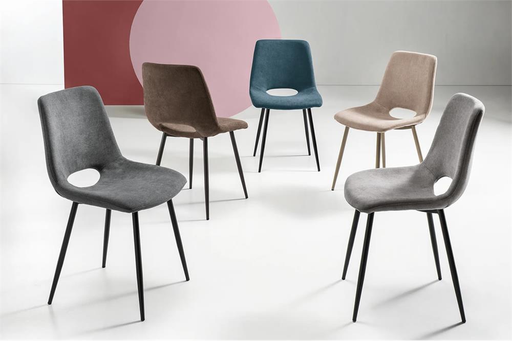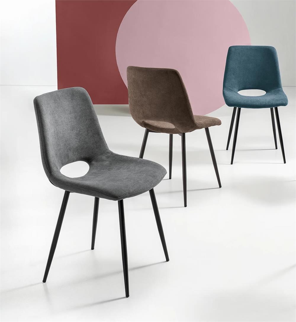 Sedia in tessuto con struttura in metallo. Disponibile in diversi colori.