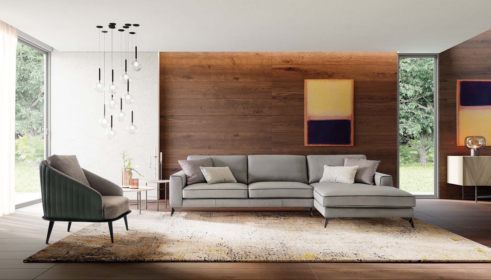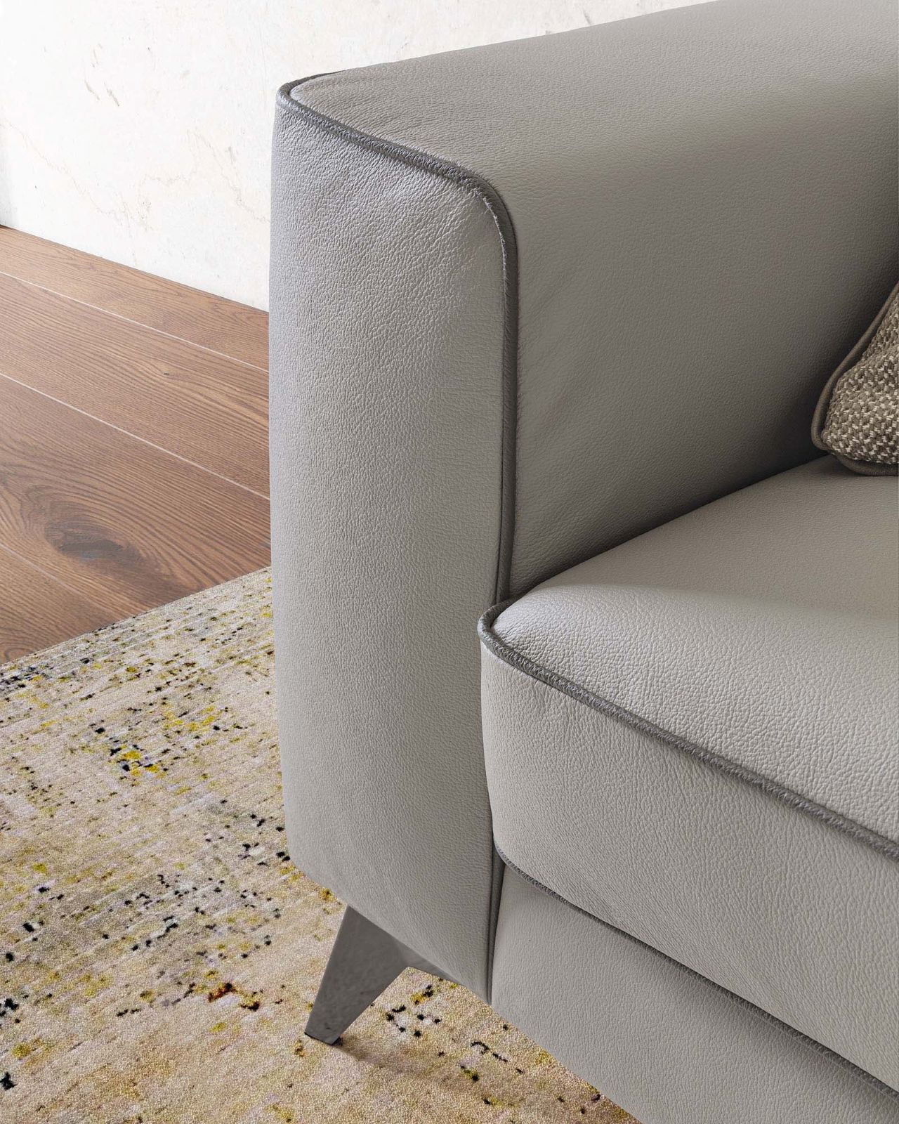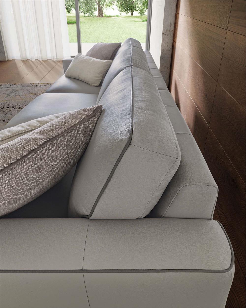Evidenziare il perimetro del salotto di casa, per farne risaltare profondità e ampiezza, questa è la missione di Russel, divano che fa dello slancio il suo principio compositivo, evidenziato dagli eleganti piedini dal profilo sottile.