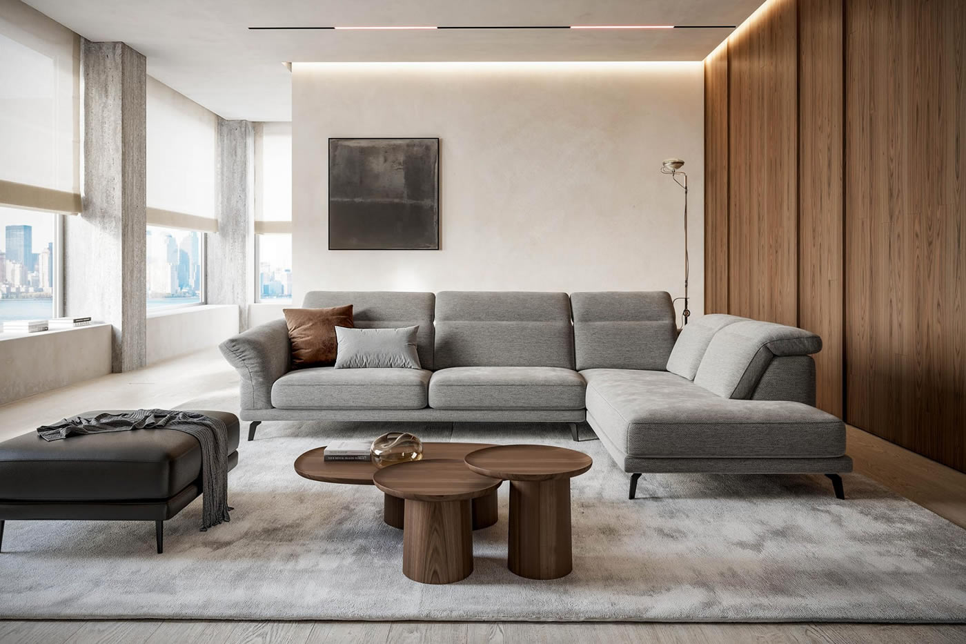Il comfort è variabile sulle tue esigenze di riposo, grazie alla opzione delle sedute estraibili e ai poggiatesta regolabili in sette posizioni, per calibrare il sostegno del collo. A queste caratteristiche si aggiungono anche i nuovi braccioli pieghevoli, che trasformano Sky in un divano dinamico, che cambia aspetto ad ogni gesto.
