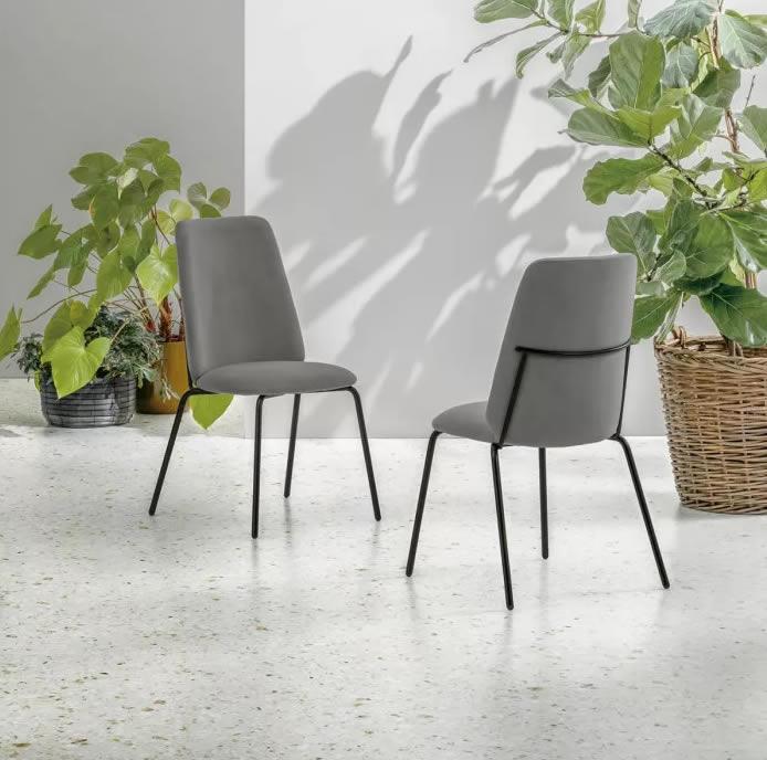 Sedia con struttura in metallo verniciato e seduta in morbida microfibra effetto velluto.