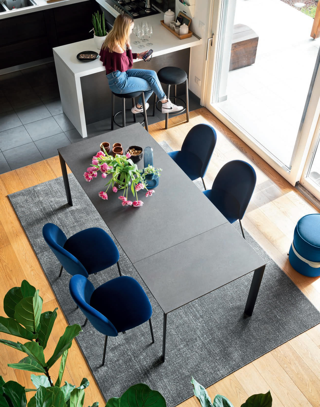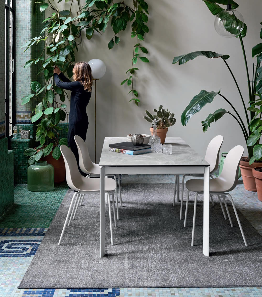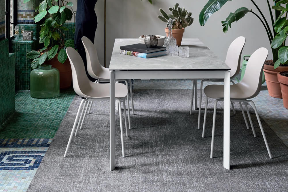 Il Tavolo Eminence Evo ha gambe in metallo a sezione ellittica che restano sempre perimetrali per garantire il comfort di tutti gli ospiti.. La sua capacità di estendersi tramite le allunghe interne permette di adattare facilmente le dimensioni del tavolo in base alle diverse esigenze.