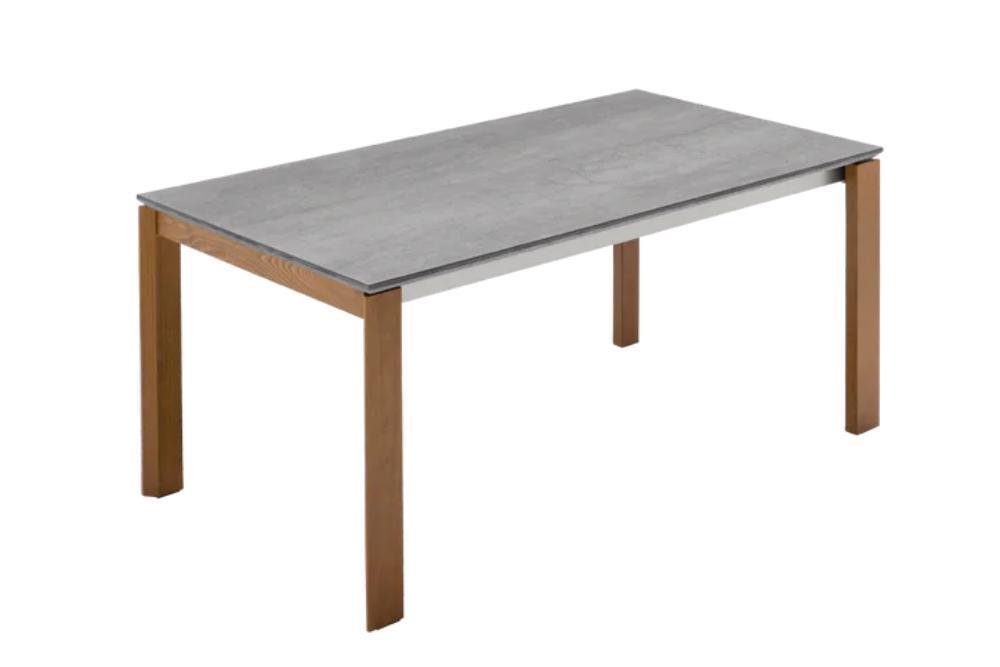 Tavolo allungabile con gambe in legno. Il sistema di allunga prevede un cassonetto estensibile in metallo e gambe sempre perimetrali, con utilizzo di ruote in gomma morbida posizionate sotto alle gambe che si spostano.