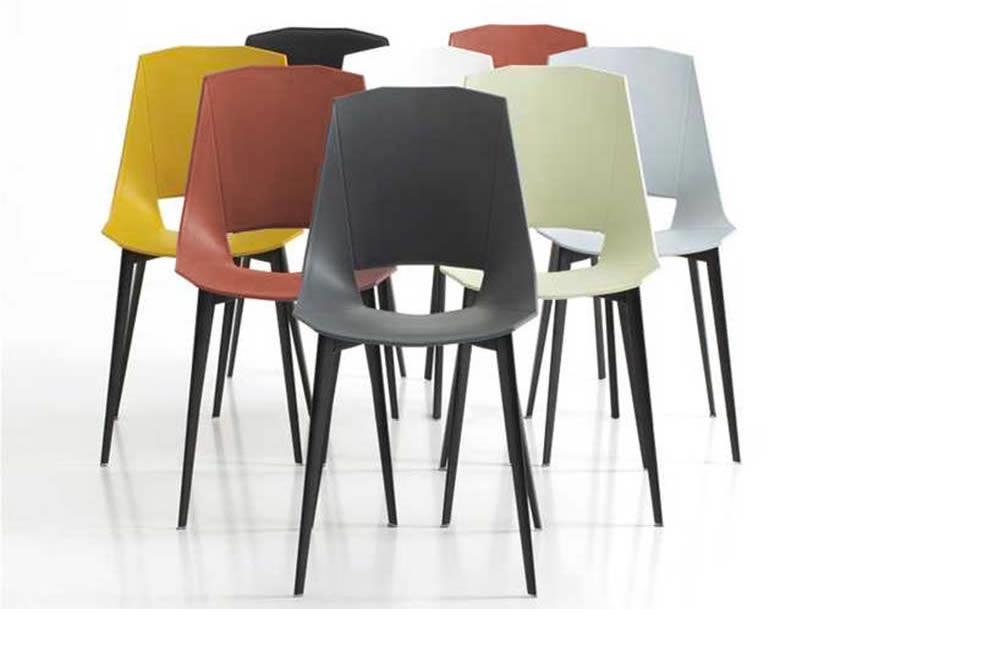 Disponibile in una vasta gamma di materiali, colori e finiture di scocca e fusto Eva Family si inserisce perfettamente negli ambienti più diversi: dall’ufficio agli spazi pubblici, a quelli della casa. La scocca è realizzata in polipropilene rinforzato con fibra di vetro e il fusto in metallo tubolare a sezione triangolare.