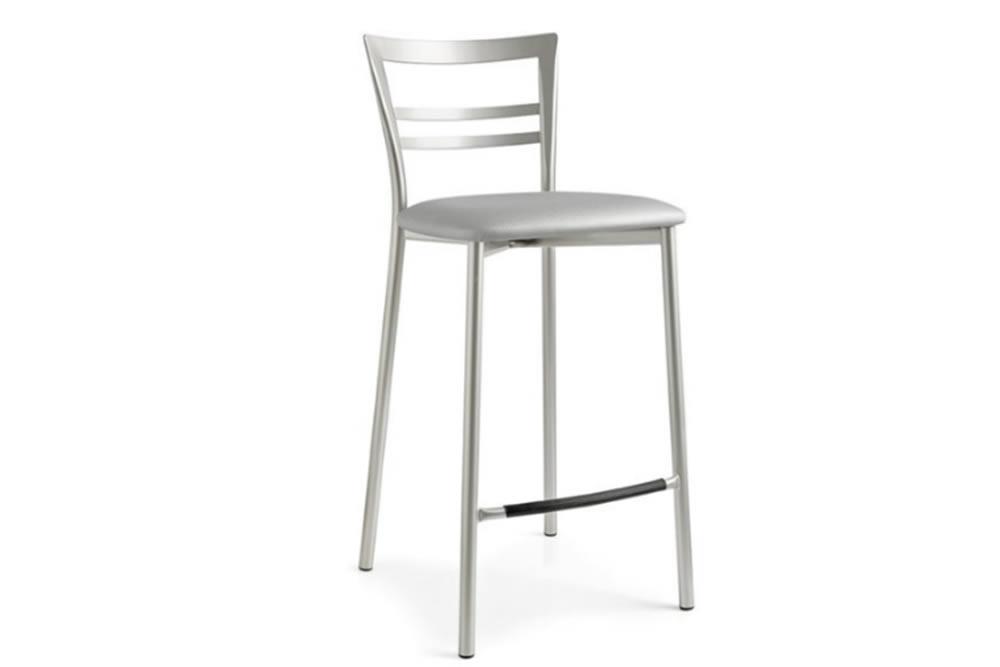 Sgabello modello GO!, struttura in metallo con poggiapiedi e sedile disponibile in molteplici finiture. Sgabello leggero e versatile, grazie alla possibilità di creare abbinamenti sempre nuovi tra la struttura, in metallo verniciato, e i diversi materiali e finiture colore disponibili per i sedili. Lo schienale a mezza altezza garantisce un comodo appoggio della schiena.