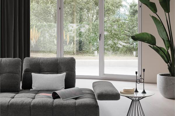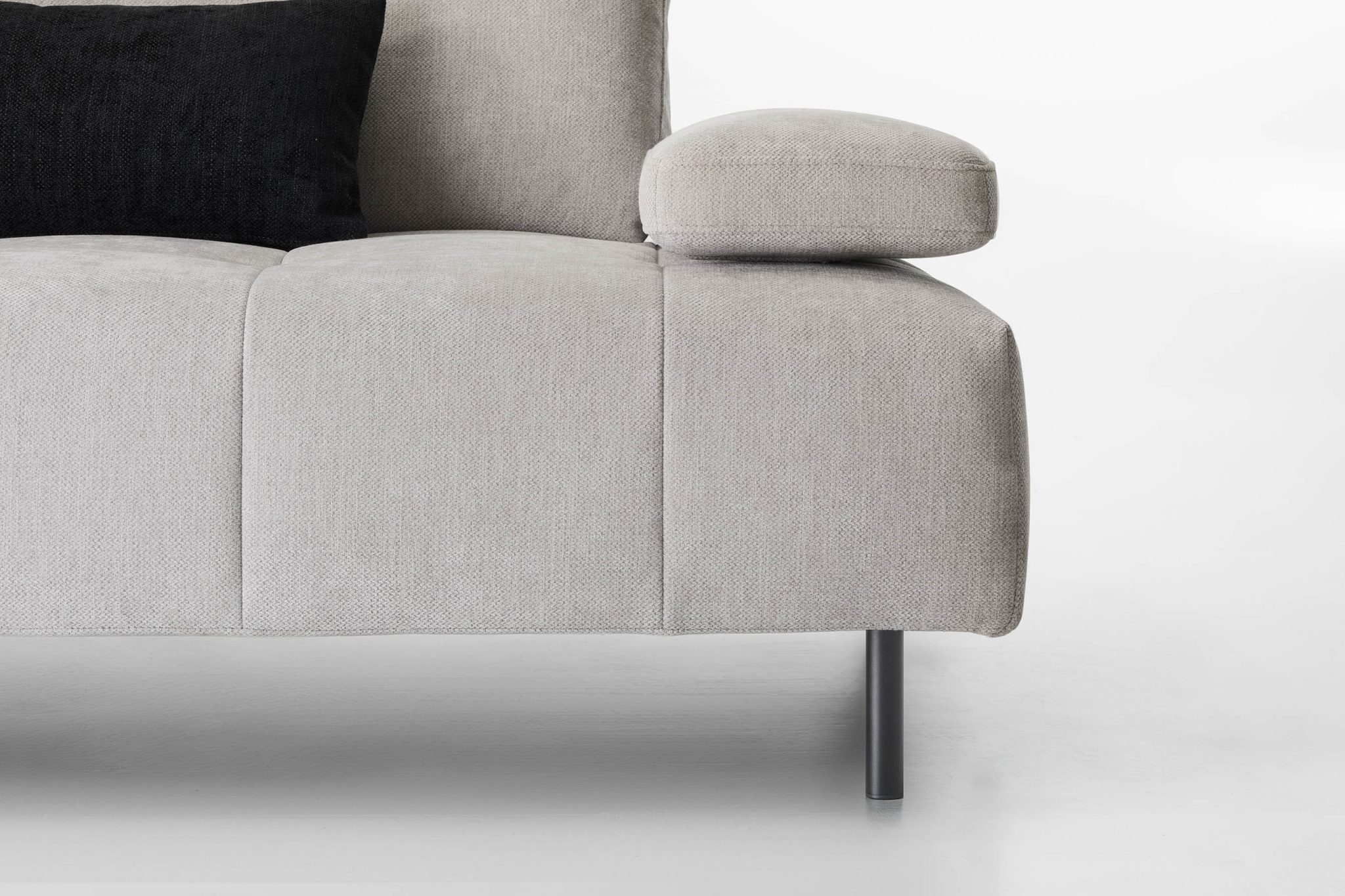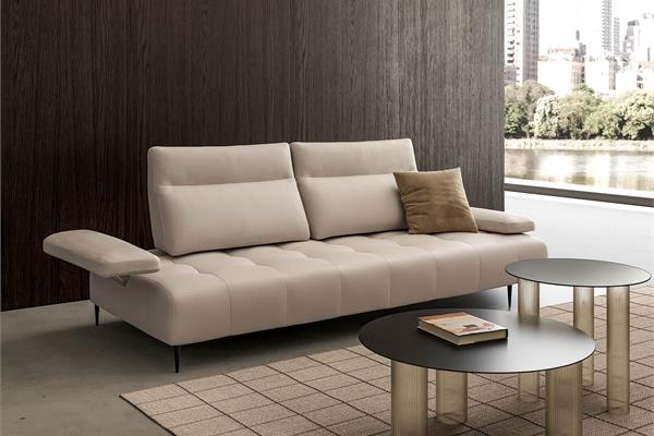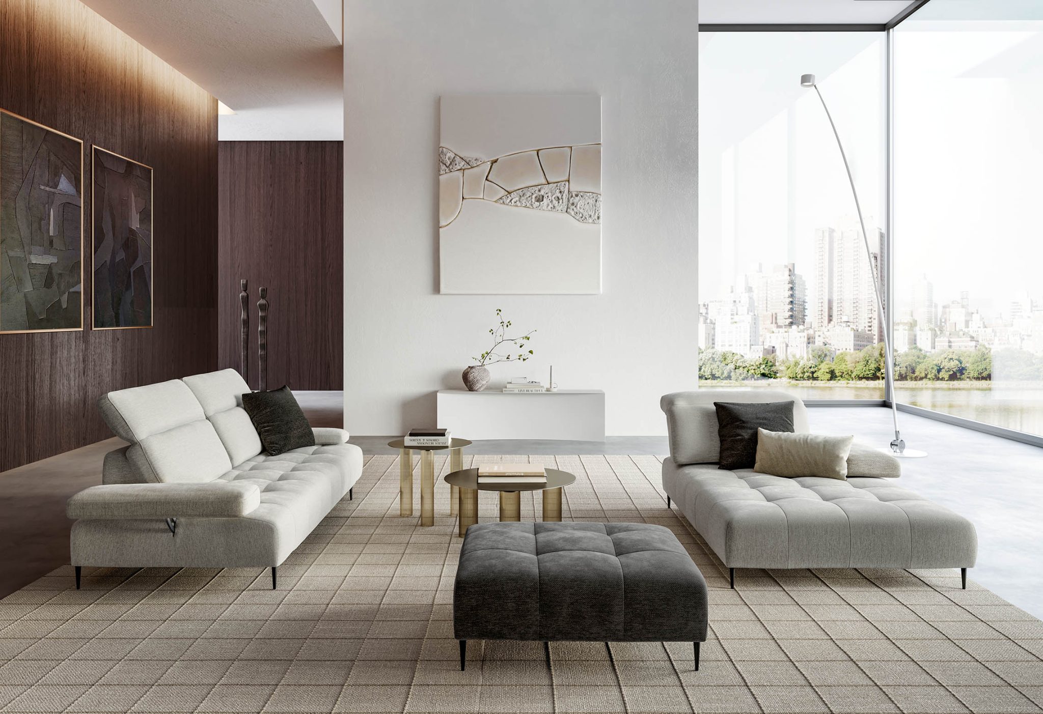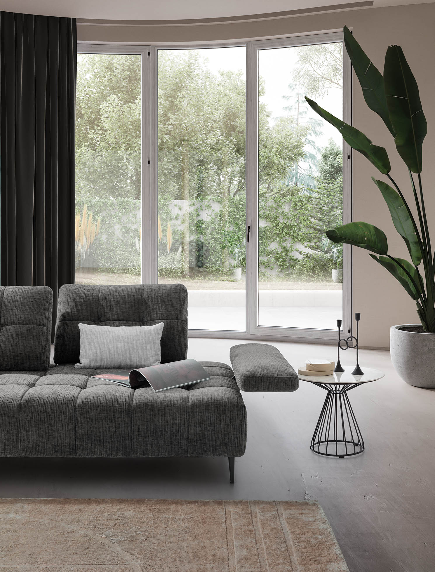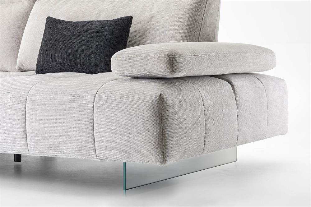 Il profilo è slanciato dai piedini alti 15 cm che alleggeriscono i volumi complessivi, mentre la seduta ampia in Tecnoform – un sandwich di poliuretani indeformabile con inserto in memory foam – invita al comfort profondo, ideale tanto per la conversazione quanto per i momenti di riposo.